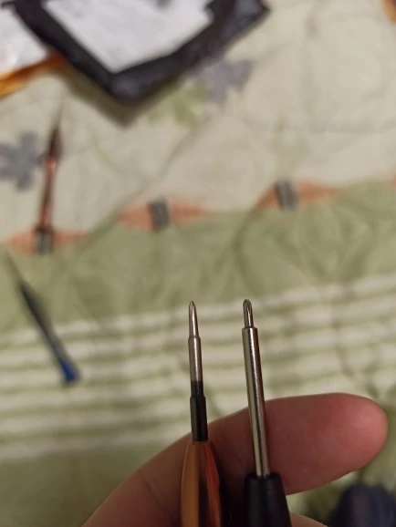 отвёртка вся поцарапана, но плевать на внешний вид, главное, чтобы не слизывало звезду после первого использования, как это происходит на отвёртках из комплектов