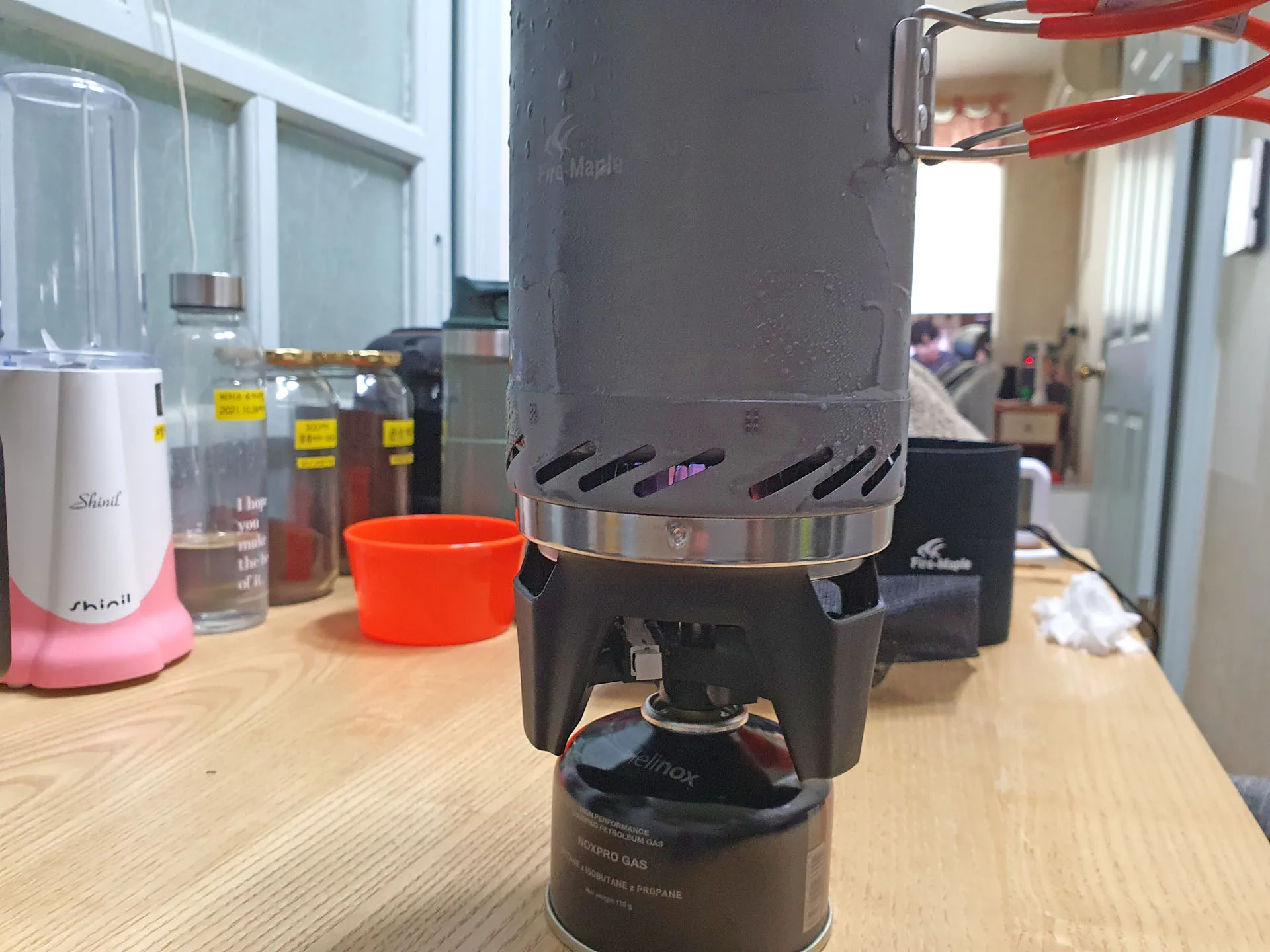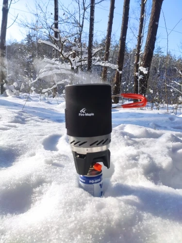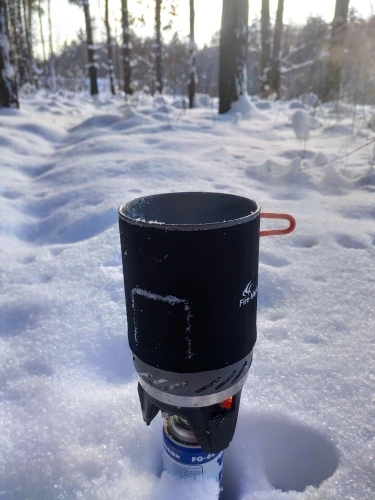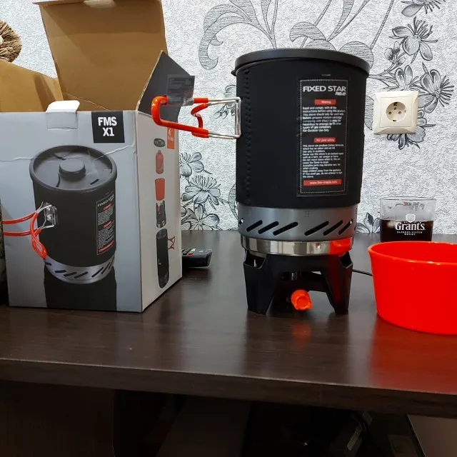 В сравнении с FMS-X3 есть ряд недостатков. Отсутствует подставка под газовый баллон. Газовый баллон не помещается в кружку - главный недостаток. В остальном горелка и конструкция кружки в целом идентичны, скорость закипания +- одинакова. Продавец надежный, доставка быстрая.
