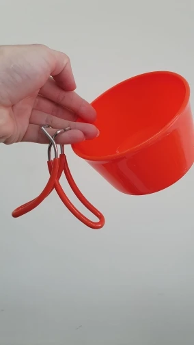 Нету оранжевой миски, зато есть чехольчик. На кастрюльке небольшая вмятина. В целом покупкой доволен.