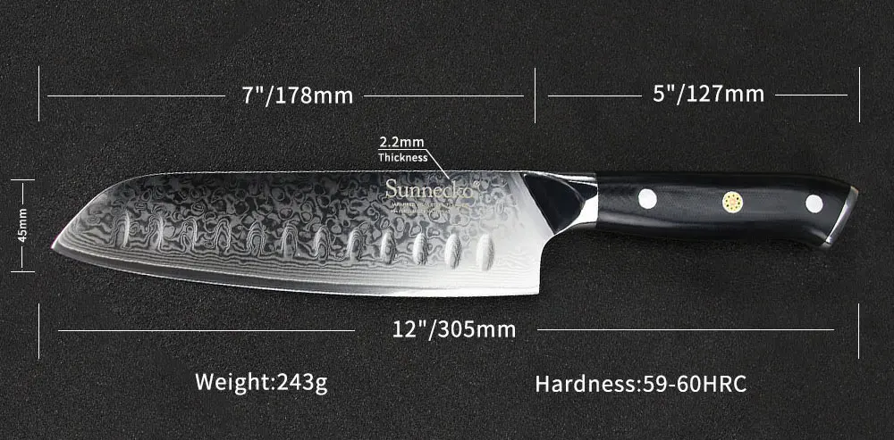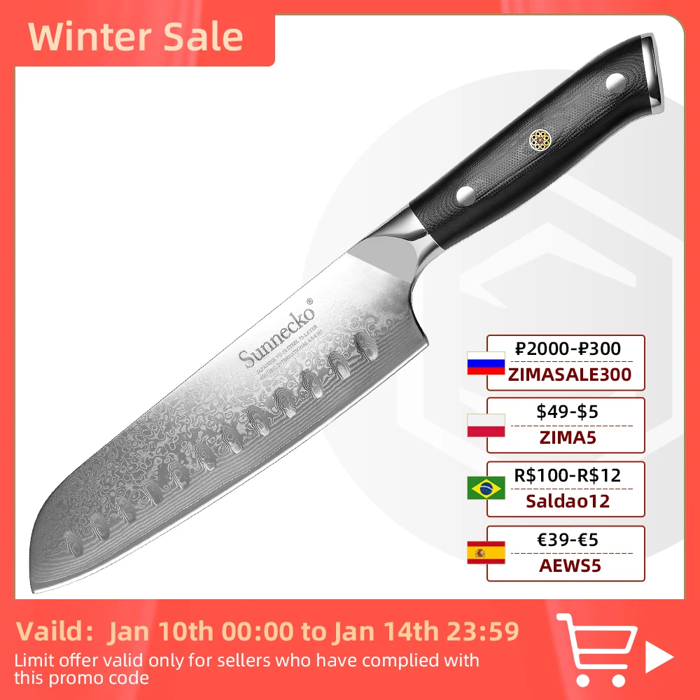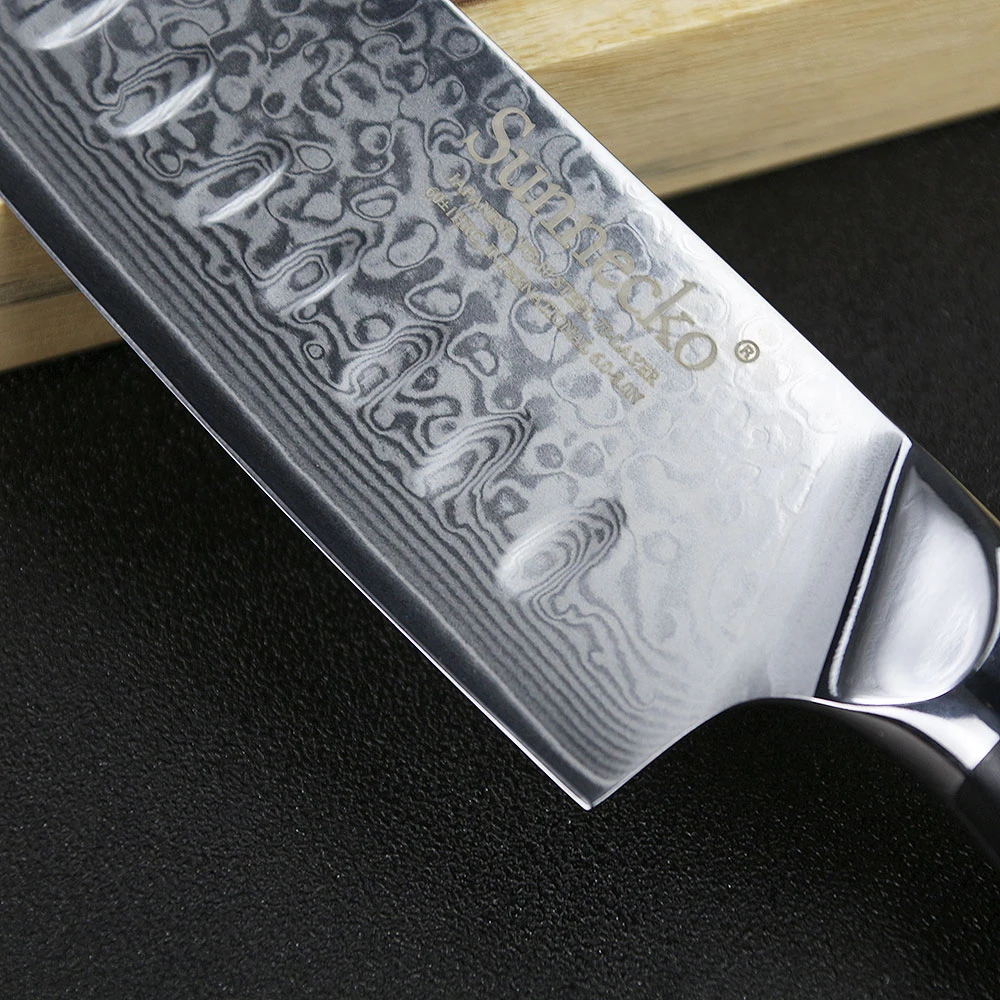 Кухонный нож сантоку SUNNECKO VG10, японское лезвие из дамасской стали, острый резец, лезвие 7 дюймов, рукоятка из G10, резак шеф-повара