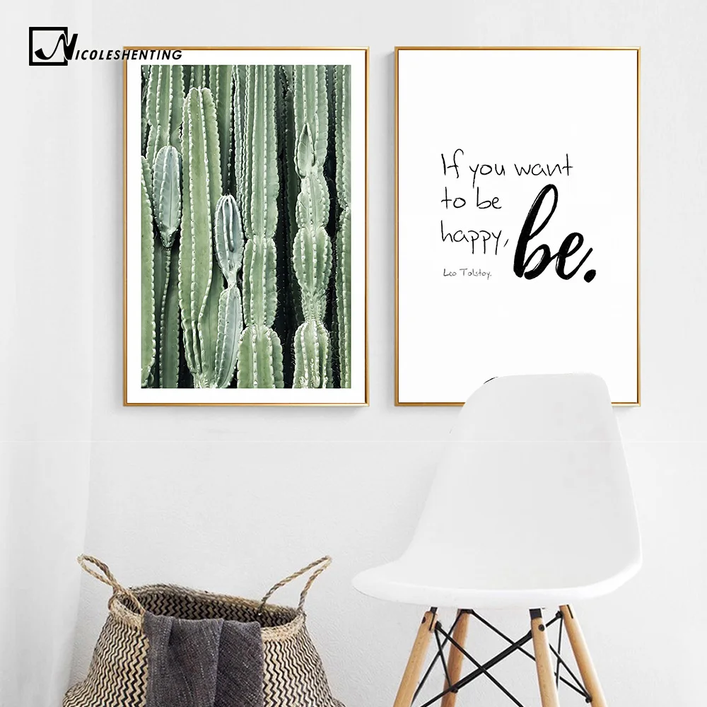 Nordic Style Leaves Cactus Poster Canvas Prints Motivational Poster Quotes Wall Art Painting Picture for Living Room Decoration