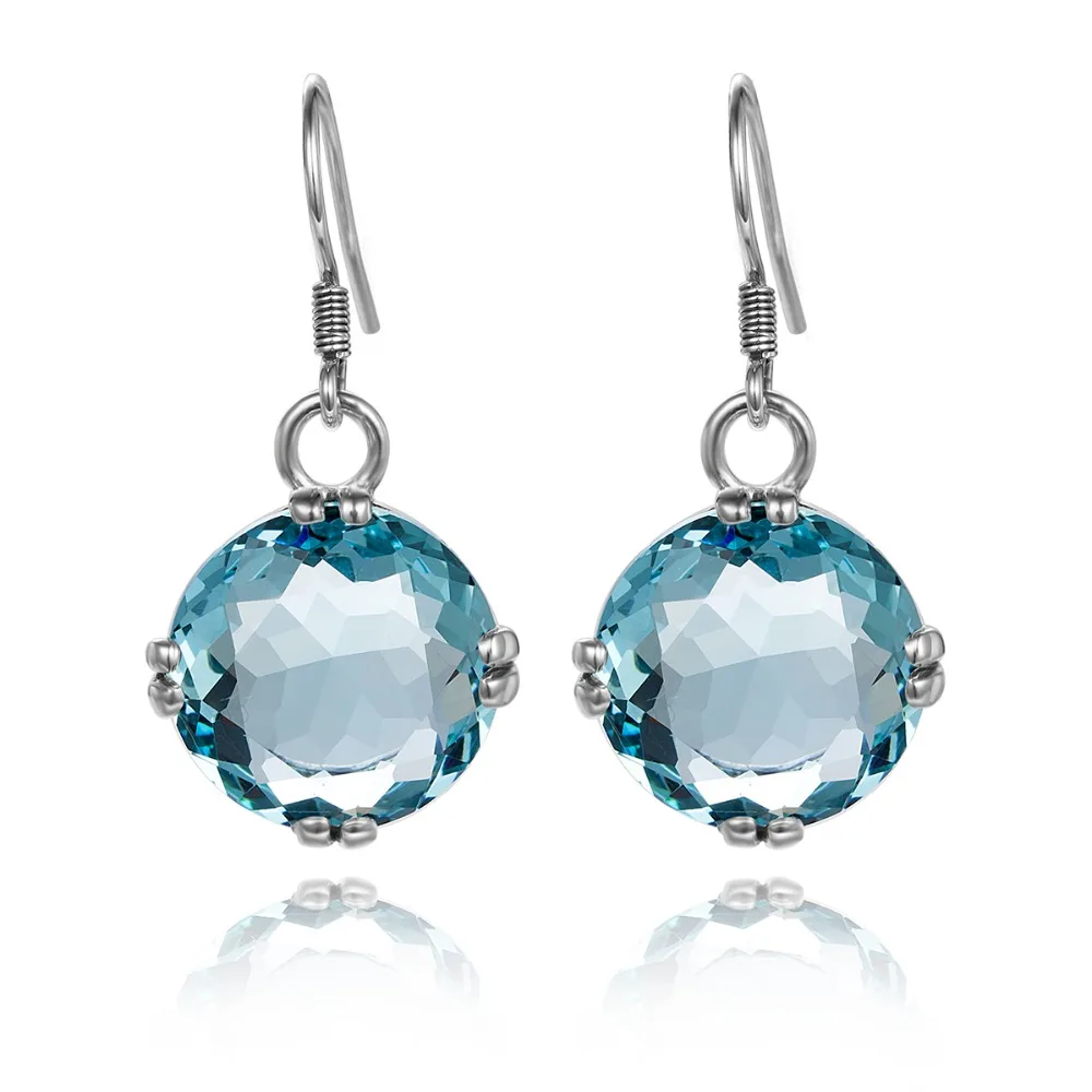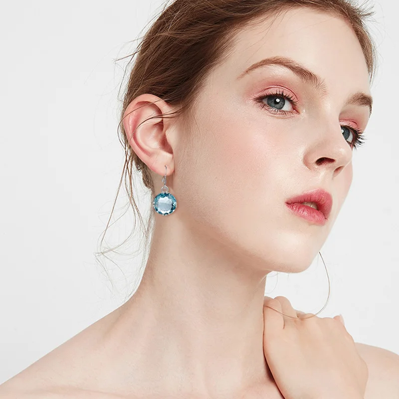Szjinao сверкающих Аквамарин серьги для женщин из натуральной кожи 925 стерлингового серебра Бохо Свадебные драгоценный камень цирконий круглой формы, для женщин и мужчин, ювелирное изделие, подарок