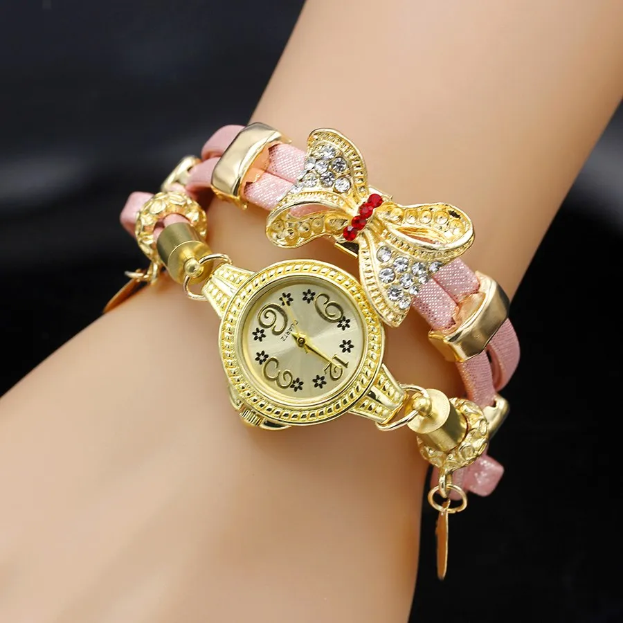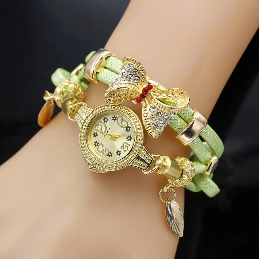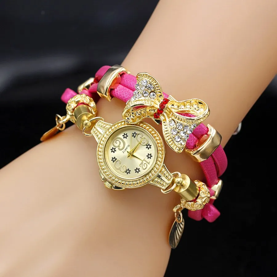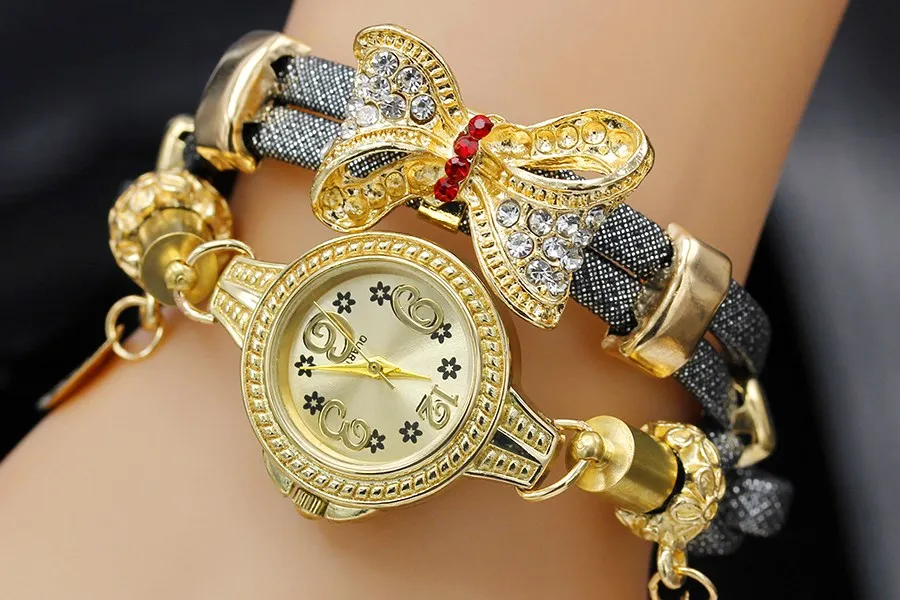 Shsby, модные женские часы, стразы, Женский веревочный ремешок, браслет из золотистого сплава с бантом, кварцевые наручные часы, женские наручные часы