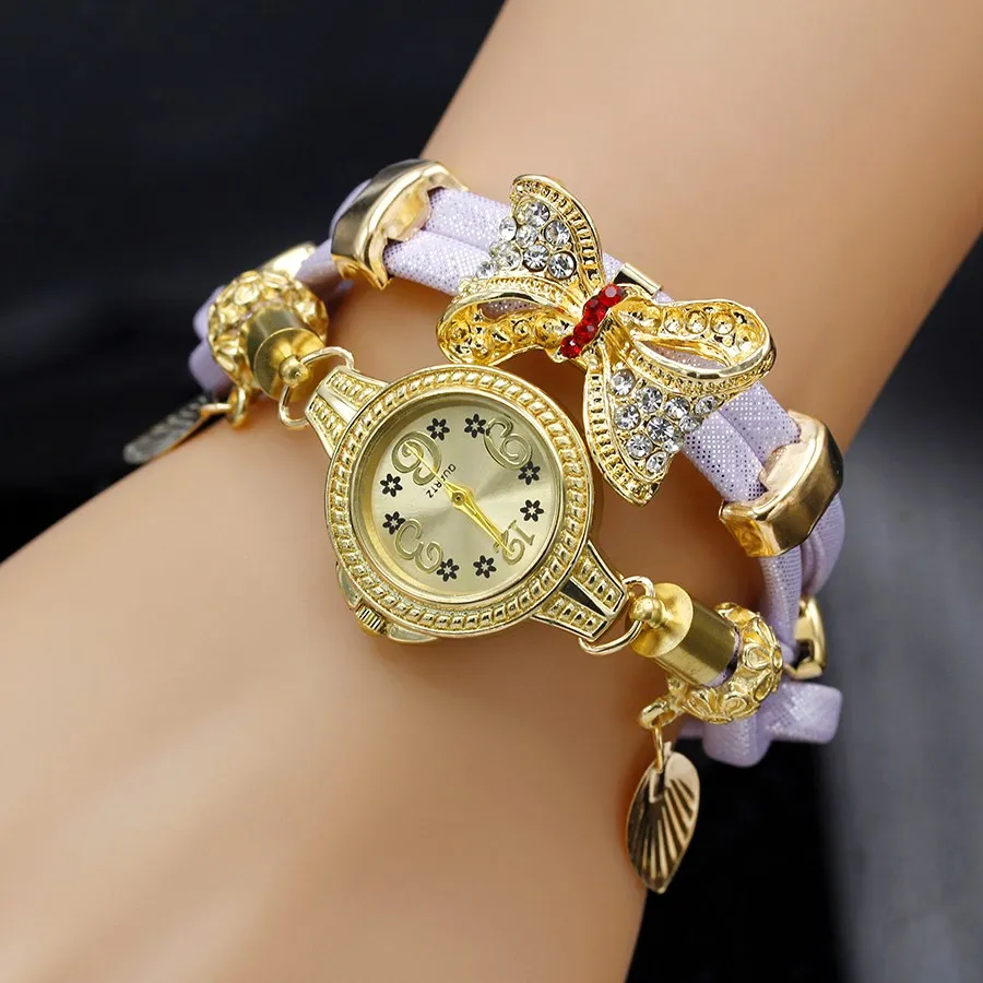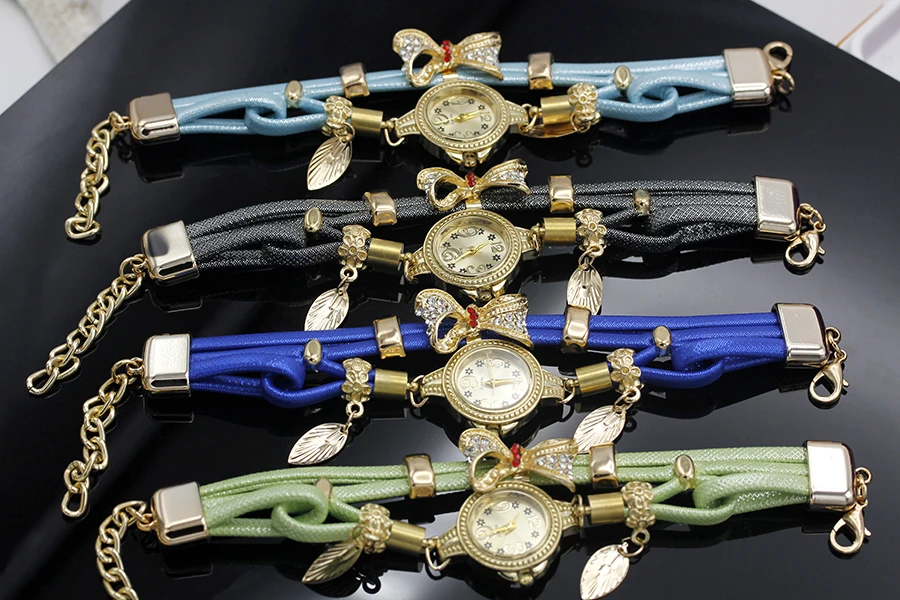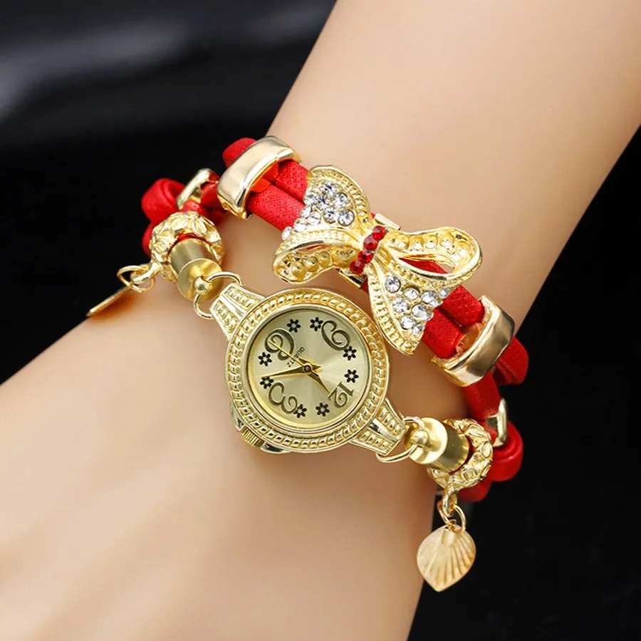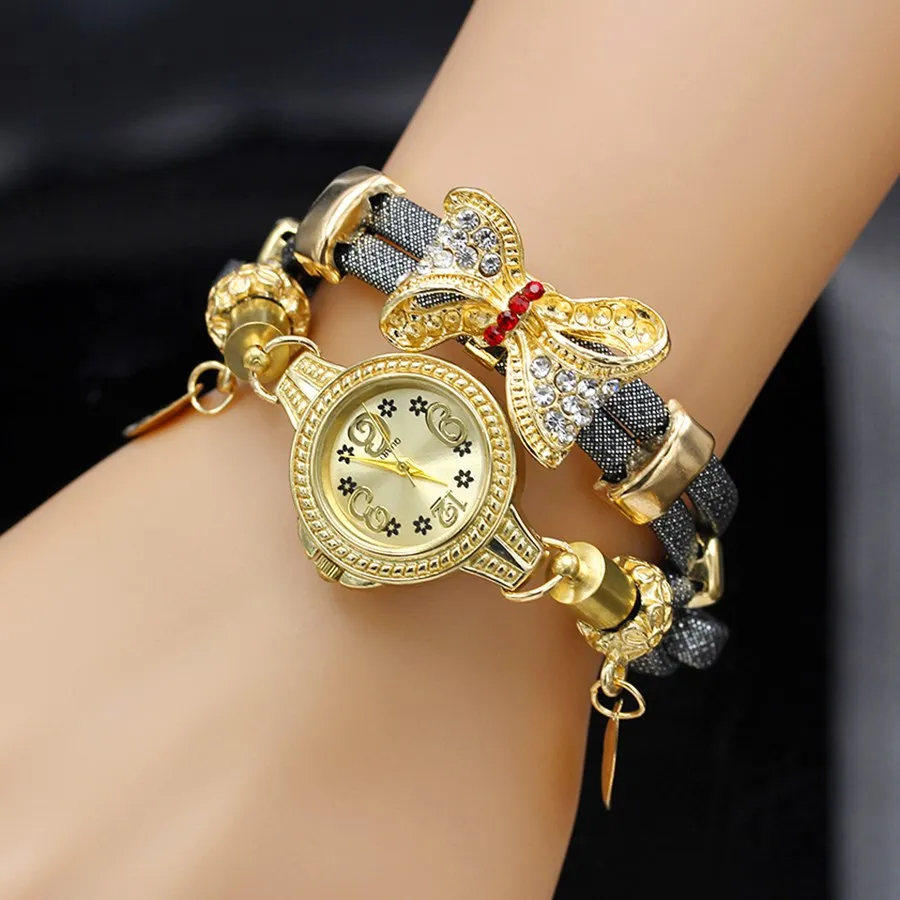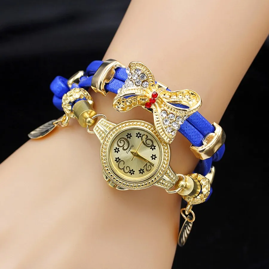 Shsby, модные женские часы, стразы, Женский веревочный ремешок, браслет из золотистого сплава с бантом, кварцевые наручные часы, женские наручные часы