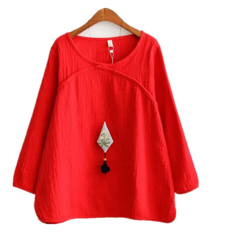 Женская модная рубашка из хлопка и льна для осени в повседневном и винтажном стиле, блузка, черные, красные, белые рубашки