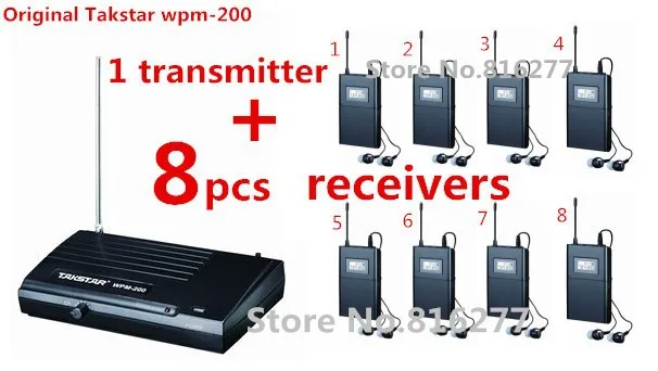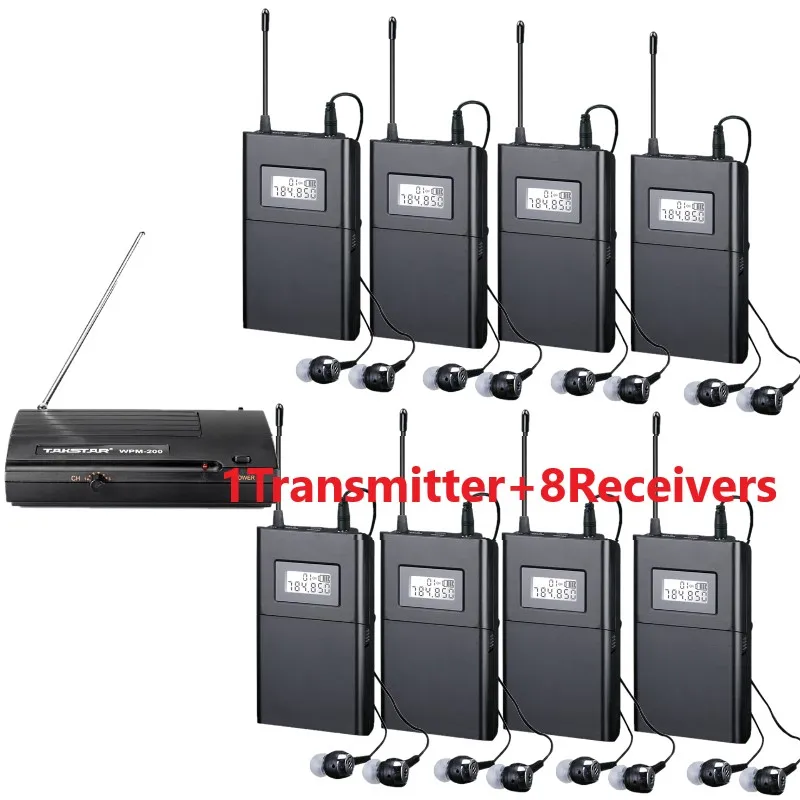Takstar WPM-200 UHF Беспроводная система монитора стерео в ухо беспроводной передатчик наушников 1 шт. + приемник 8 шт. Бесплатная доставка