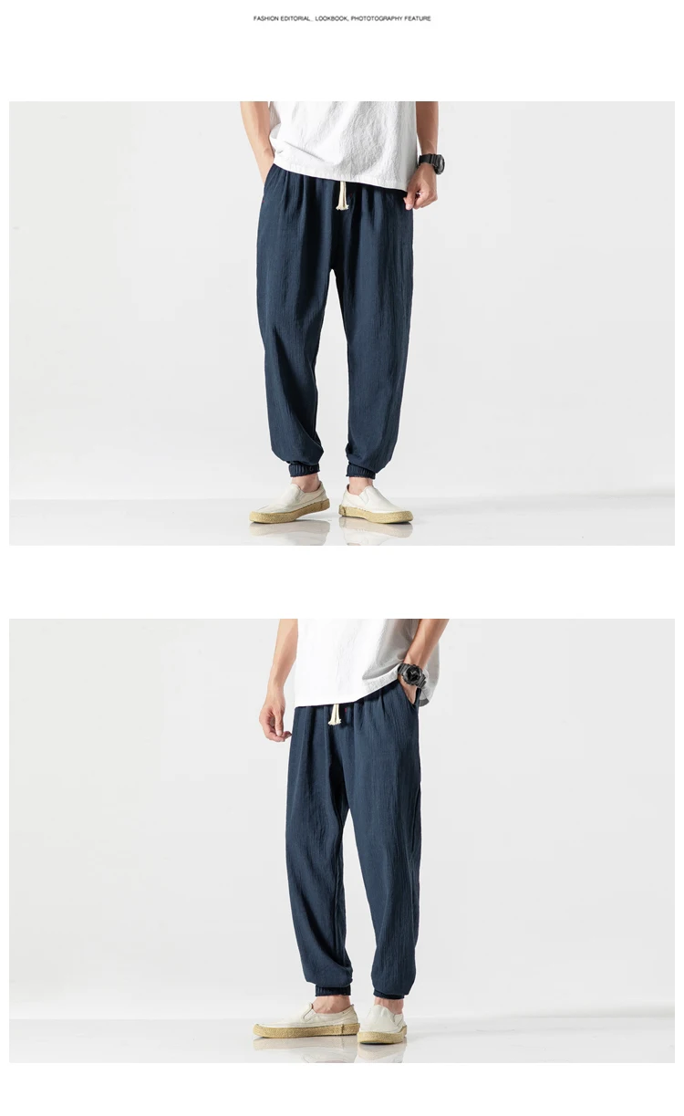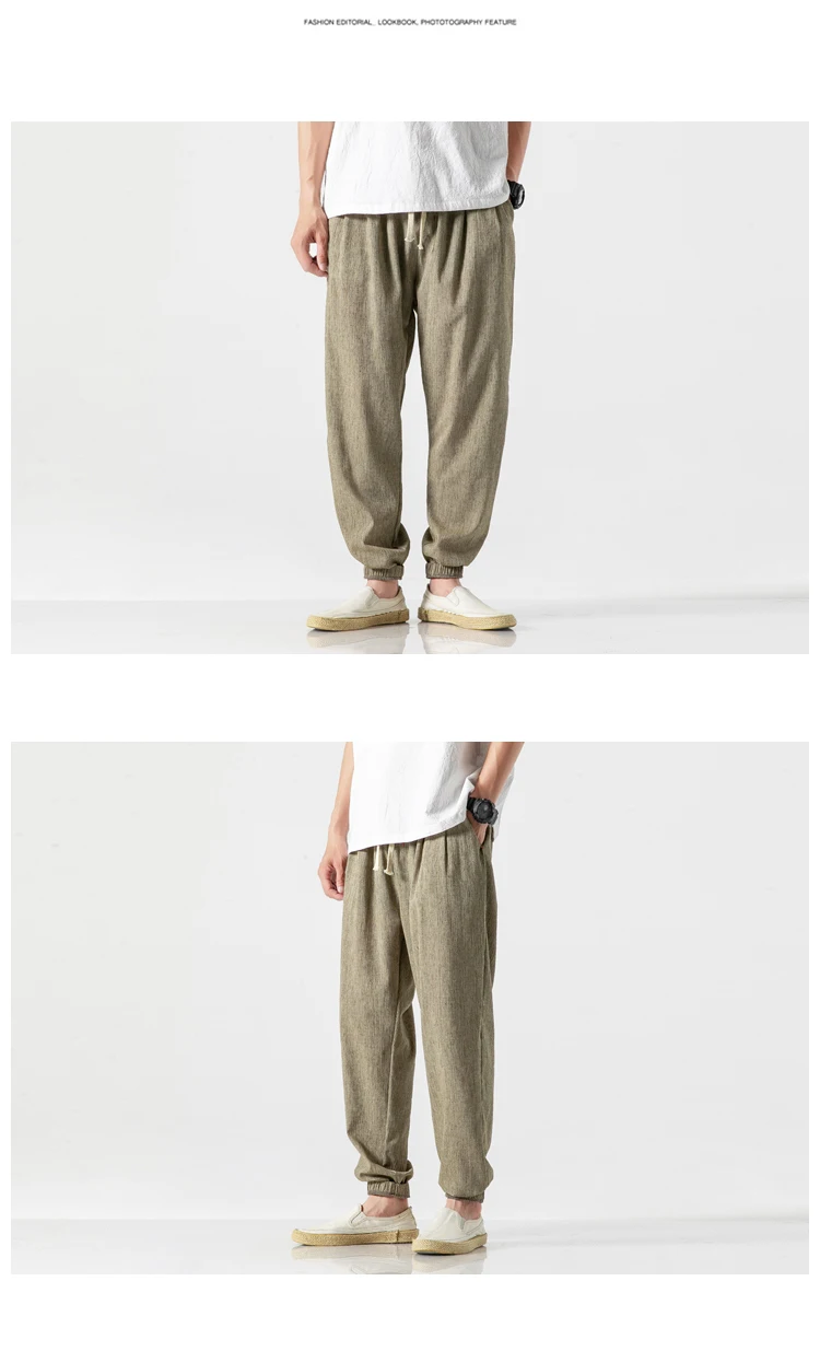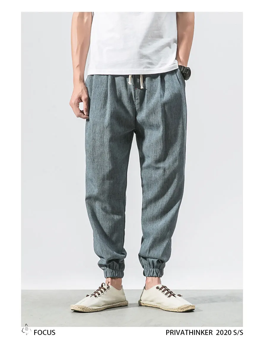 Privathinker, хлопковые льняные повседневные шаровары, мужские джоггеры, мужские летние брюки, мужские мешковатые штаны в китайском стиле, 2022, Harajuku одежда