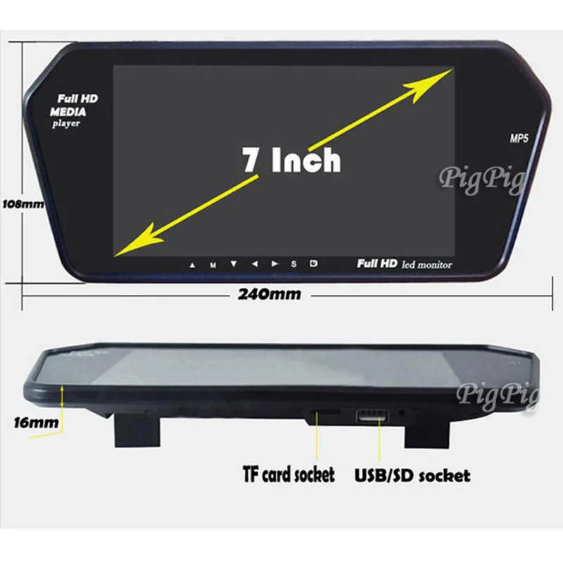 Монитор-зеркало 1024x600, 7 дюймов, Bluetooth, MP5, с разъемом USBSD, инфракрасная система
