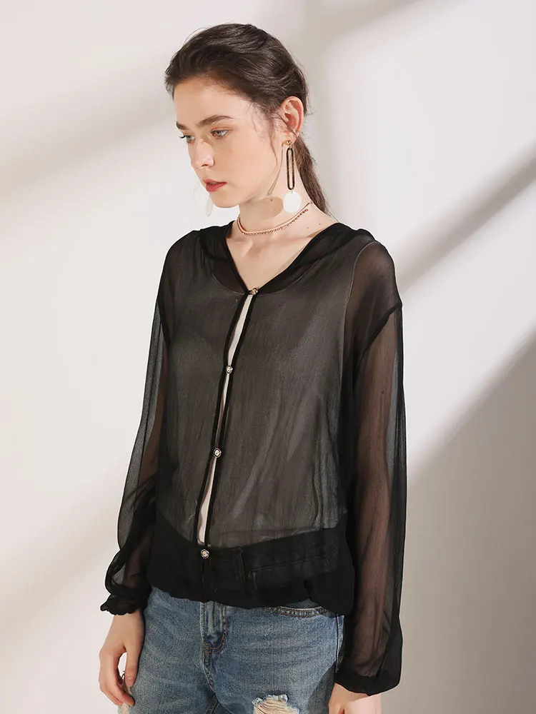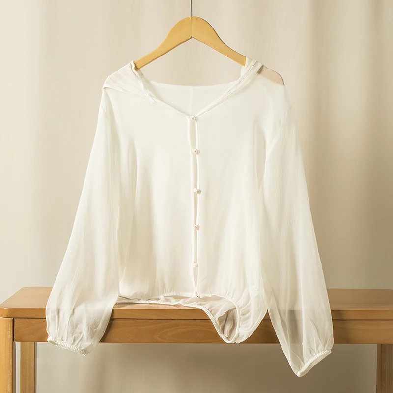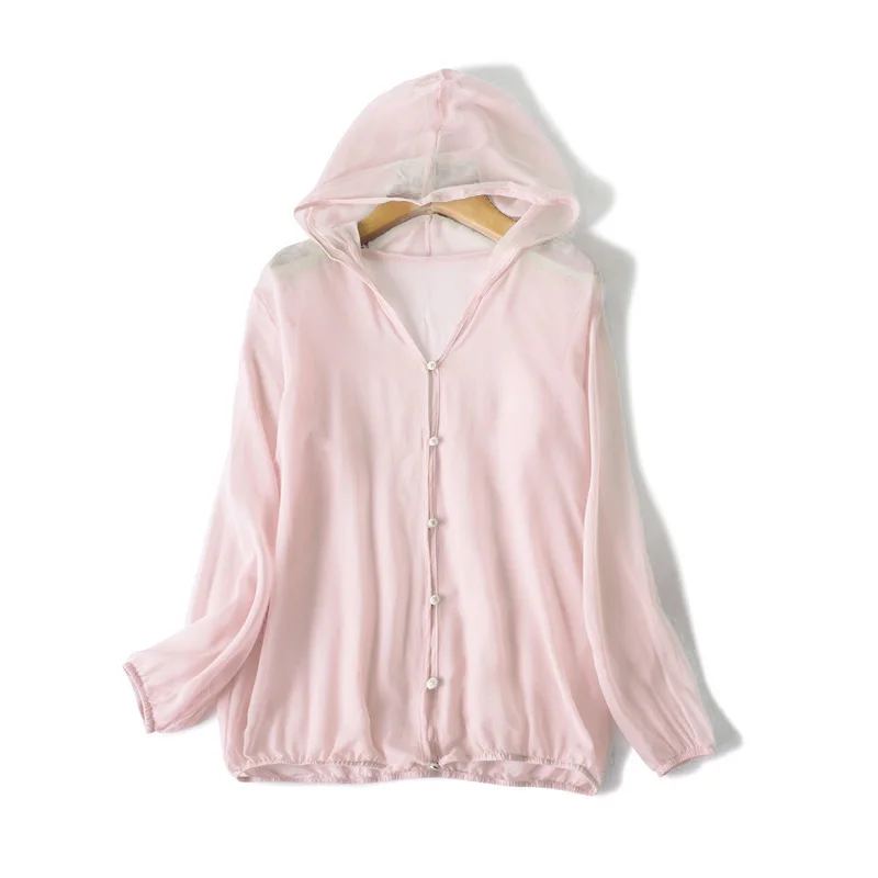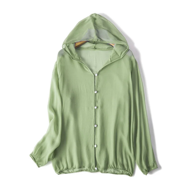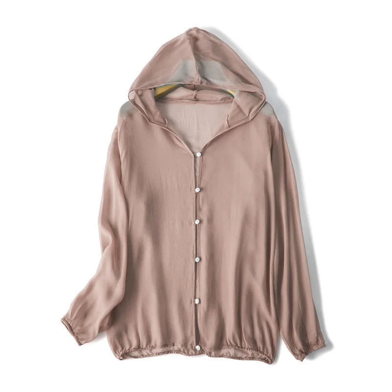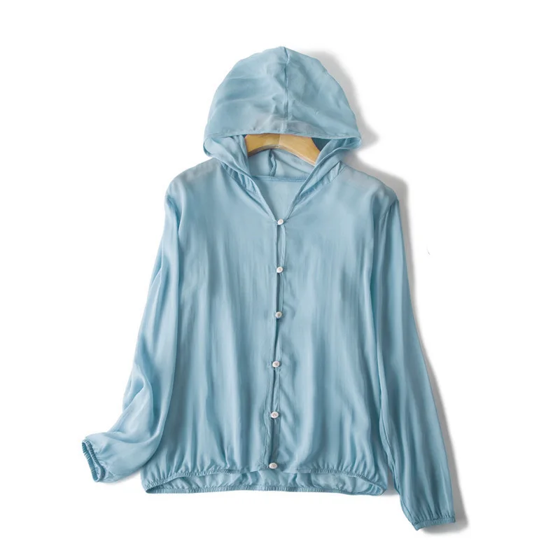 SuyaDream, женская блузка с капюшоном, 100% шелк, жоржет, однотонная шифоновая блуза на пуговицах, рубашка, весна-лето 2022, Солнцезащитная ткань