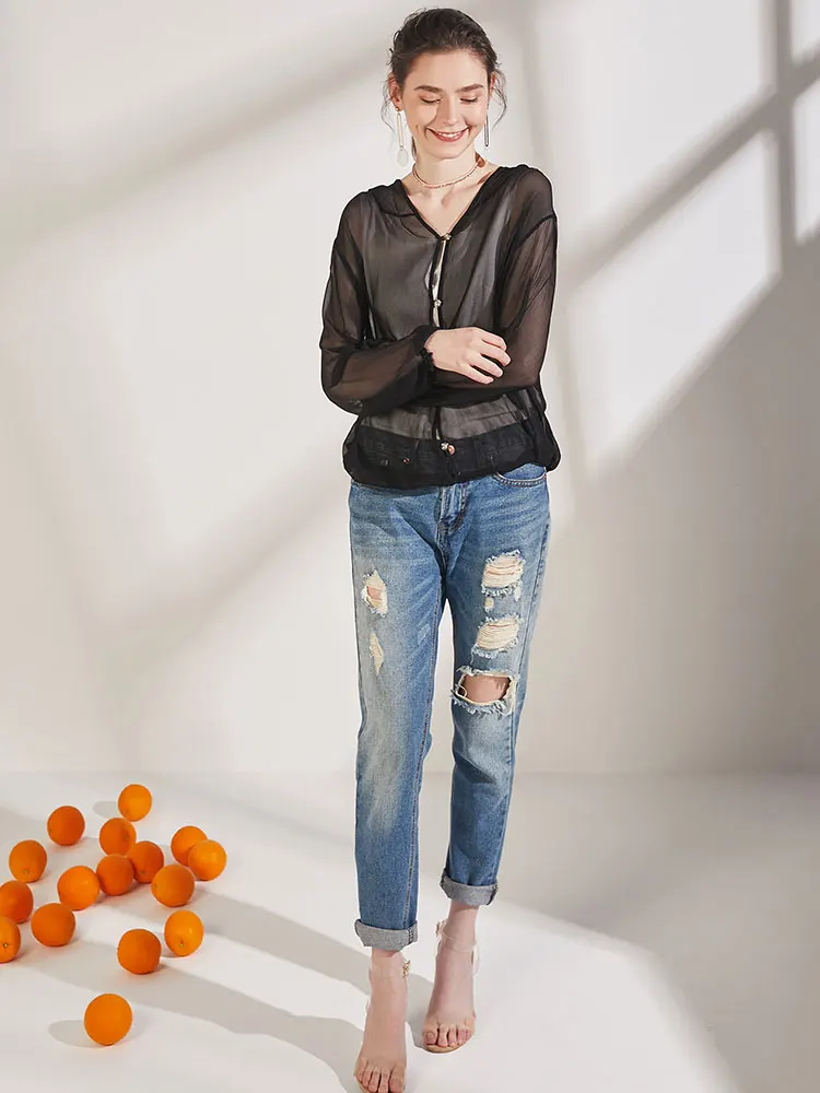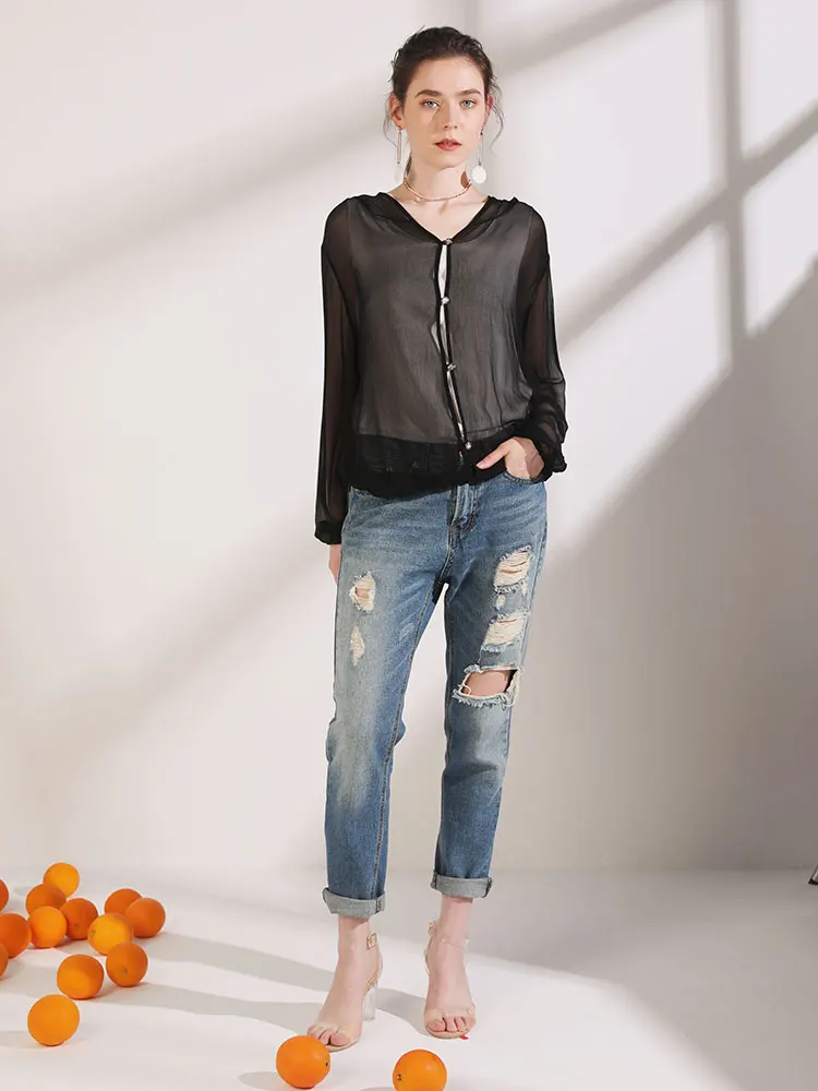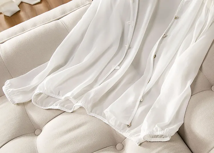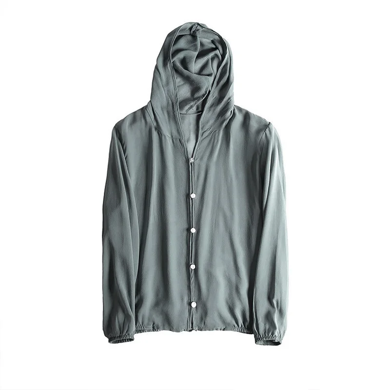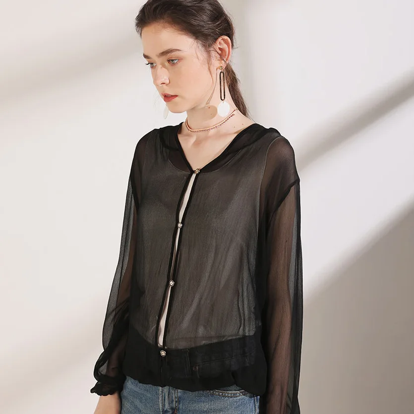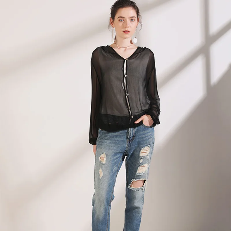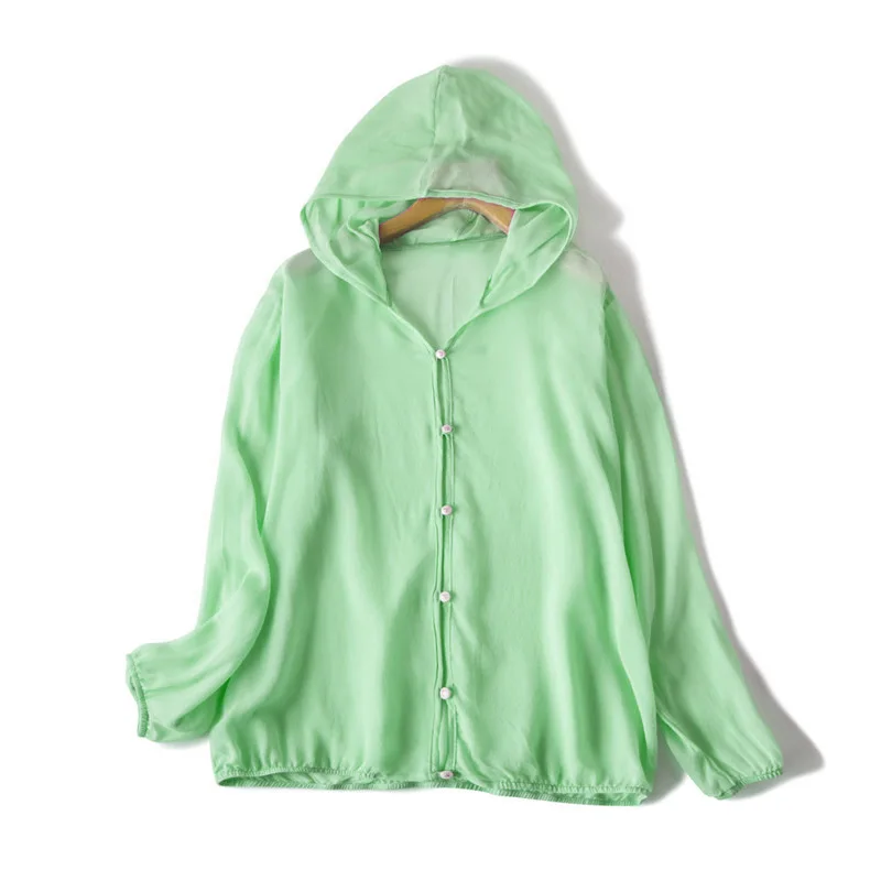 SuyaDream, женская блузка с капюшоном, 100% шелк, жоржет, однотонная шифоновая блуза на пуговицах, рубашка, весна-лето 2022, Солнцезащитная ткань