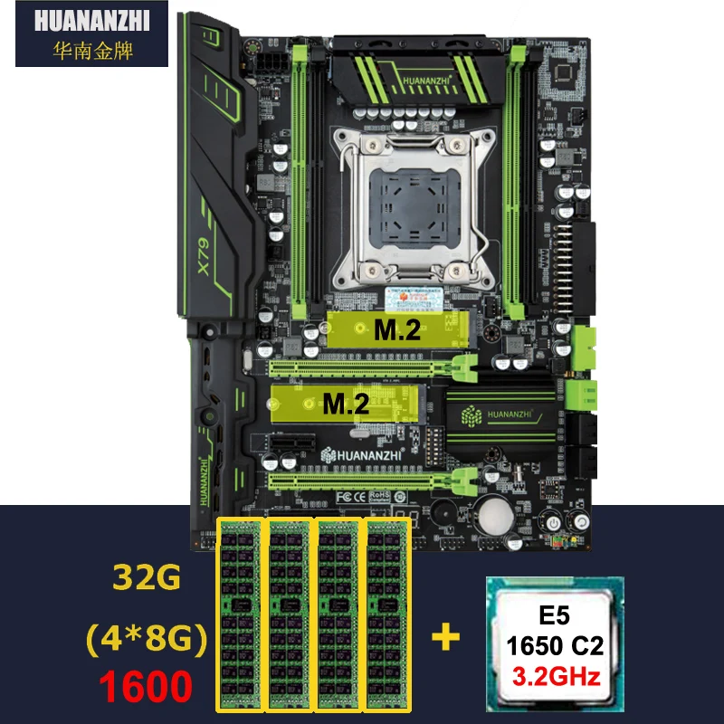 Скидка материнская плата с двойным M.2 слотом huanzhi X79 материнская плата с процессором Intel Xeon E5 1650 3,2 ГГц RAM 32G(4*8G) REG ECC