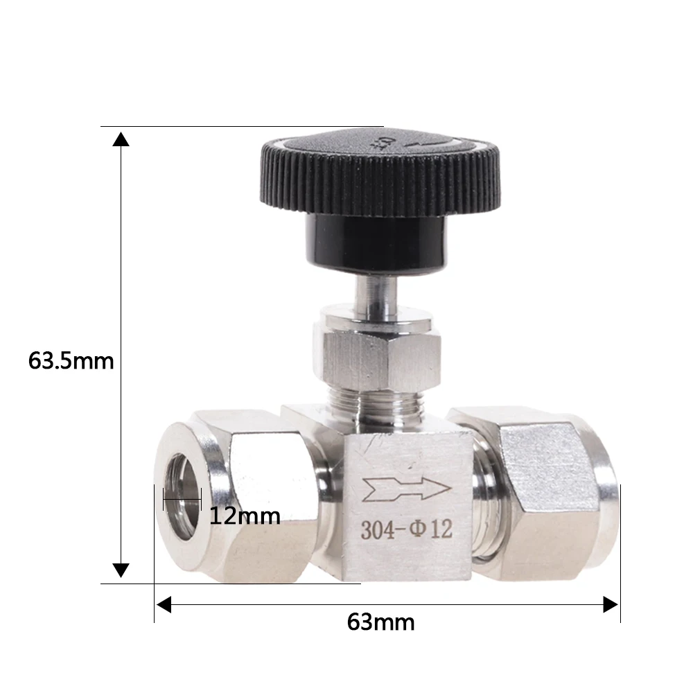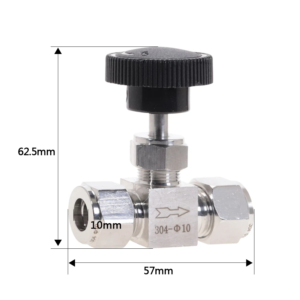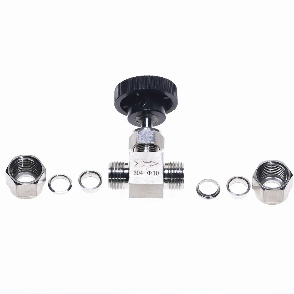 Регулируемый игольчатый клапан диаметром 3, 4, 6, 8, 10, 12 мм, трубка из нержавеющей стали 304, кислотостойкий, прямой карточный кран