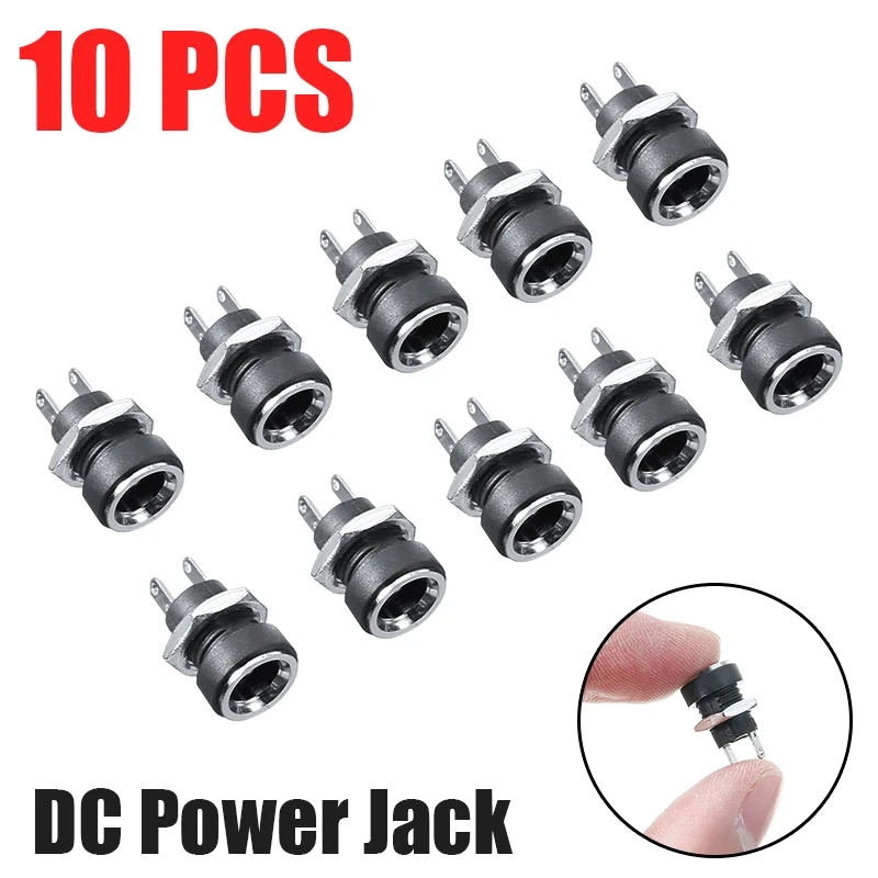 10 шт. Разъем питания постоянного тока, гнездовой разъем для крепления на панель, высококачественный черный разъем питания постоянного тока 5,5x2,1 мм