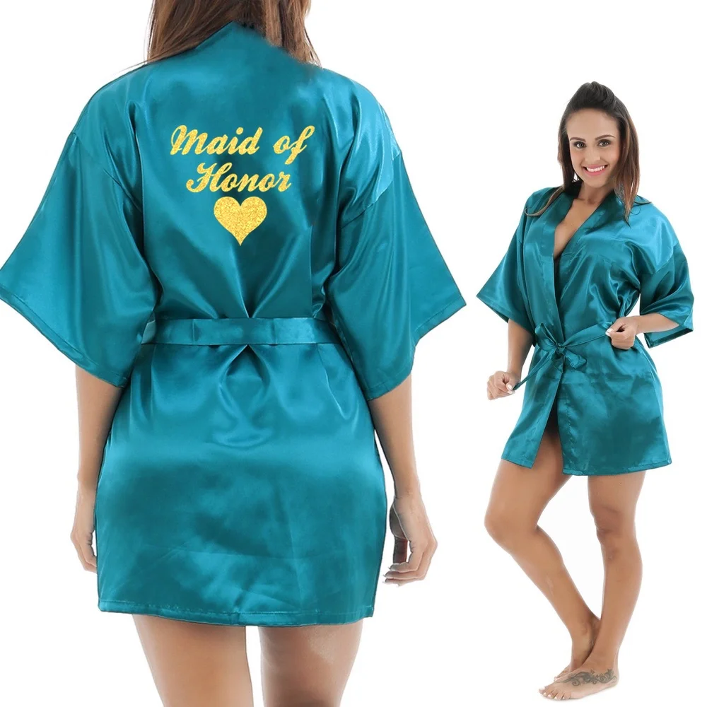 Халат-кимоно DongKing из искусственного шелка, матрон чести, с золо...