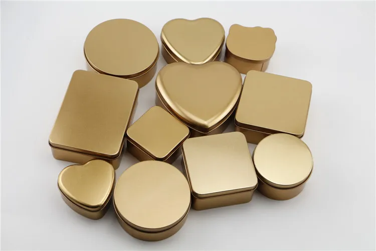 10 шт.лот жестяные металлические коробки золотого цвета для украшений, свадебных конфет, различных товаров, милый подарок, железный материал