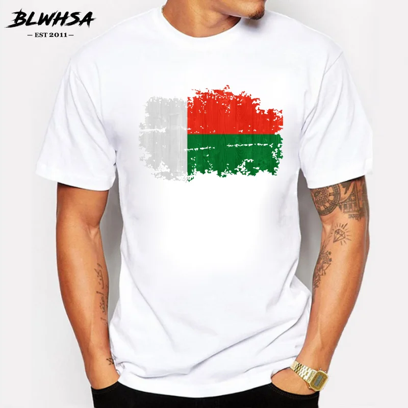 Мужские футболки BLWHSA с мадагаскарским флагом, хлопковые топы с коротким рукавом и круглым вырезом, летние мужские футболки