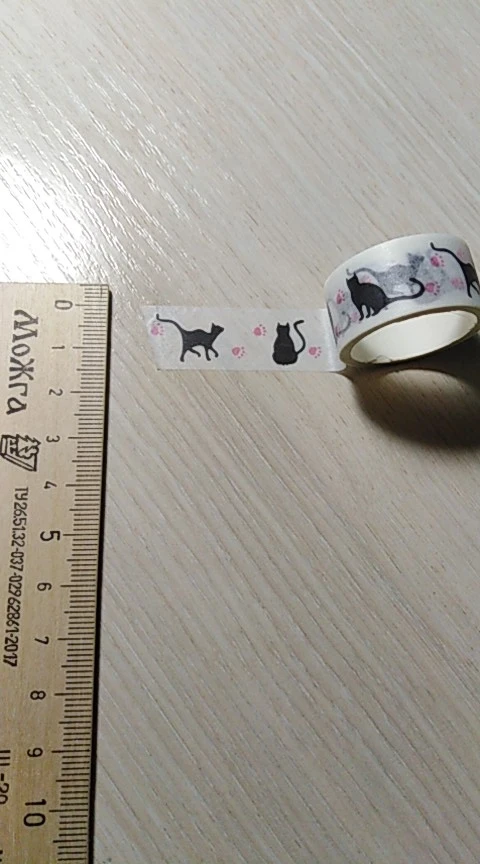 1 шт.упак. Новый 15 мм * 10 м мультяшный Черный кот печати японский бумажный скотч клейкая лента декоративная клейкая лента
