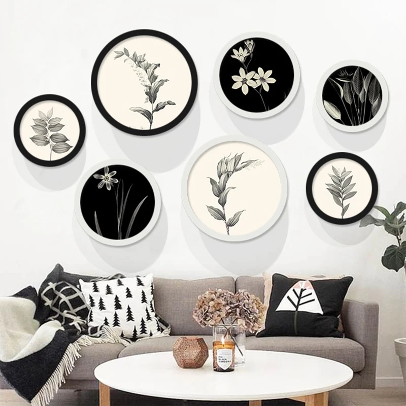 Круглый Декоративный постер HAOCHU Скандинавская Картина на холсте с черно-белыми растениями, простой современный настенный постер в скандинавском стиле для ресторана