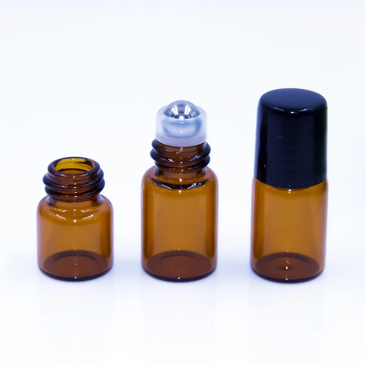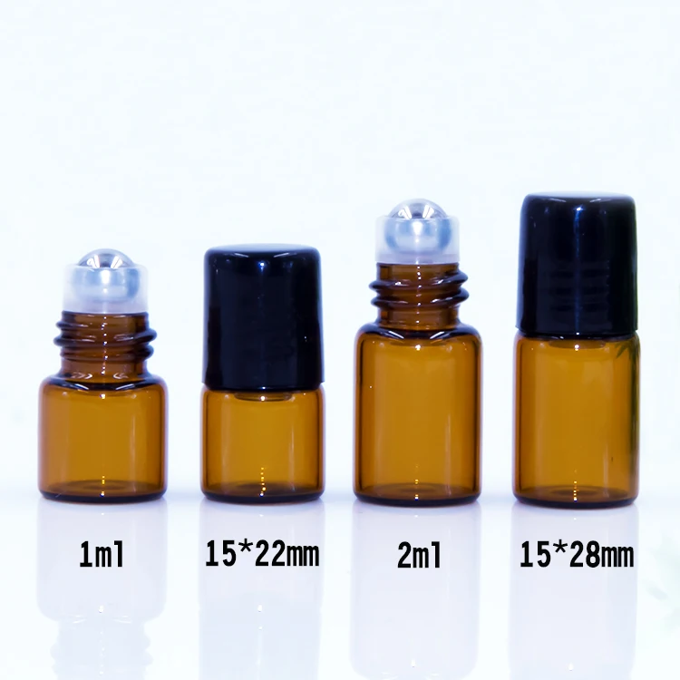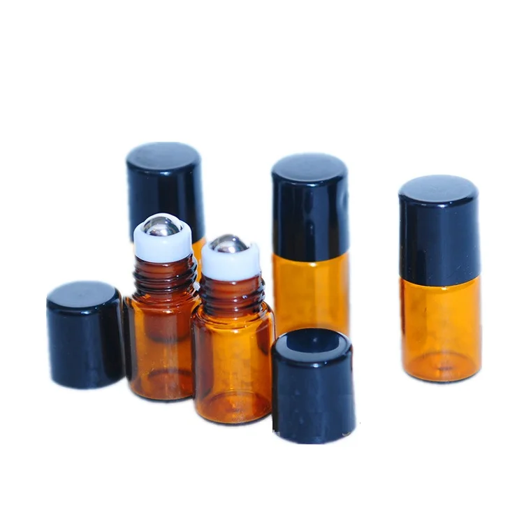 30 шт.лот 1 мл 2 мл Янтарный стеклянный рулон на бутылке с роликом из нержавеющей стали маленькая бутылка для эфирного масла