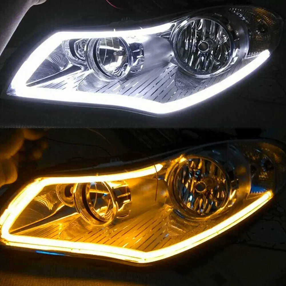 Дневные ходовые огни 2 шт.лот 45 см 60 см D RL, гибкая мягкая трубка C ar, Светодиодная лента, фара, белый + желтый указатель поворота
