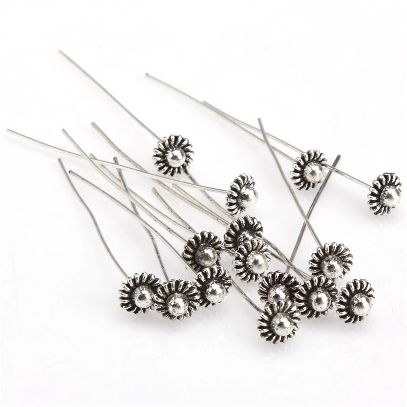 Шпильки с полукруглой головкой и цветком, золотистые и Серебристые Длинные шпильки в античном стиле для изготовления ювелирных изделий, аксессуары сделай сам, 20 шт., 50 мм
