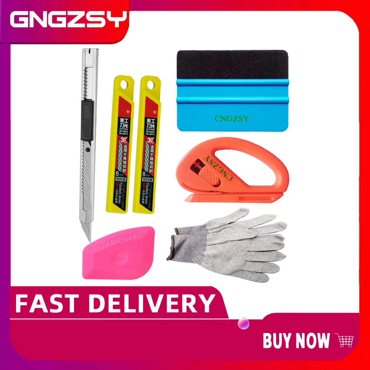CNGZSY 7 в 1 виниловая пленка инструменты наклейки обмотка скребок безопасность утилита нож для резки фольги без статических нейлоновых перчаток инструмент для стайлинга автомобиля K51