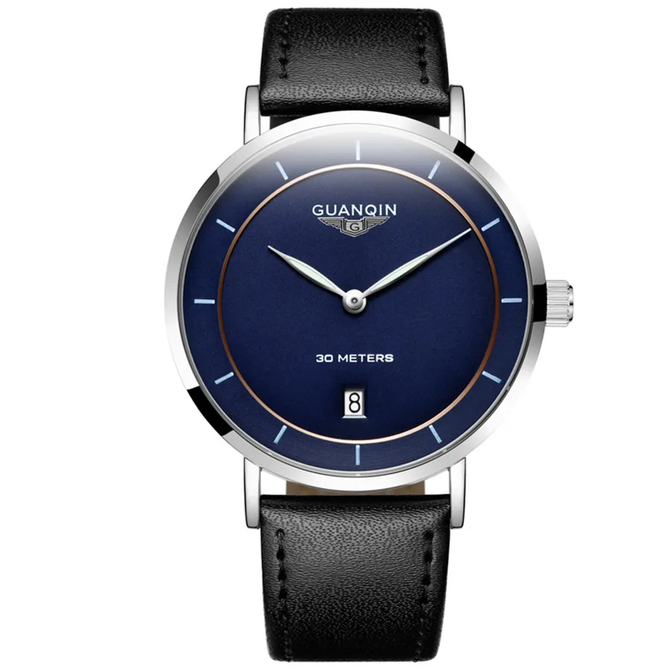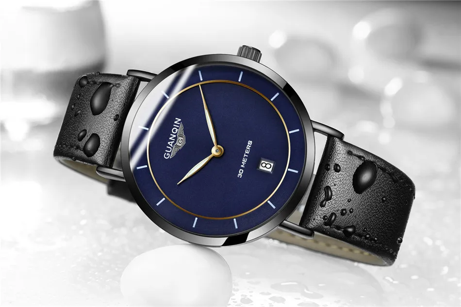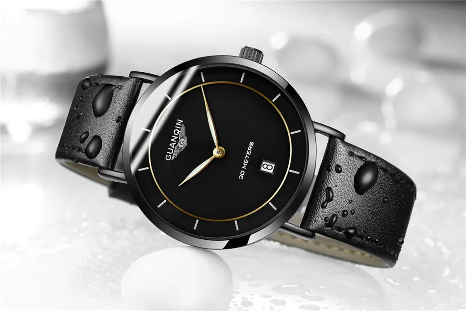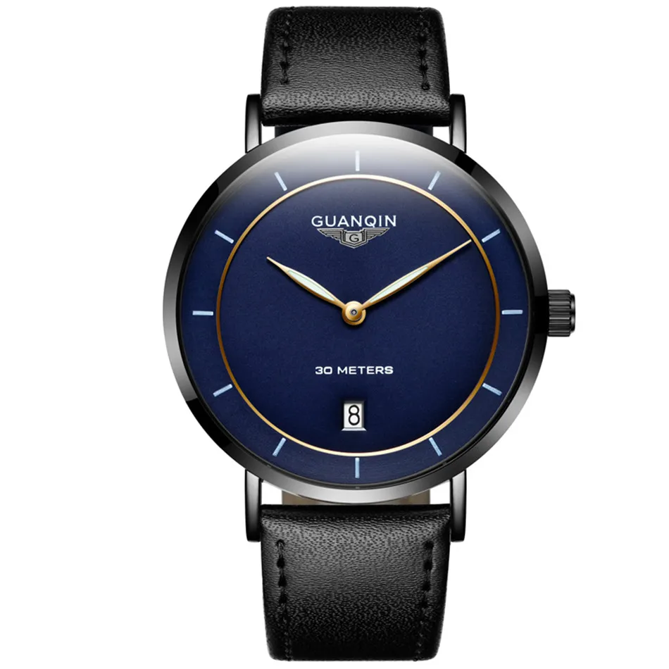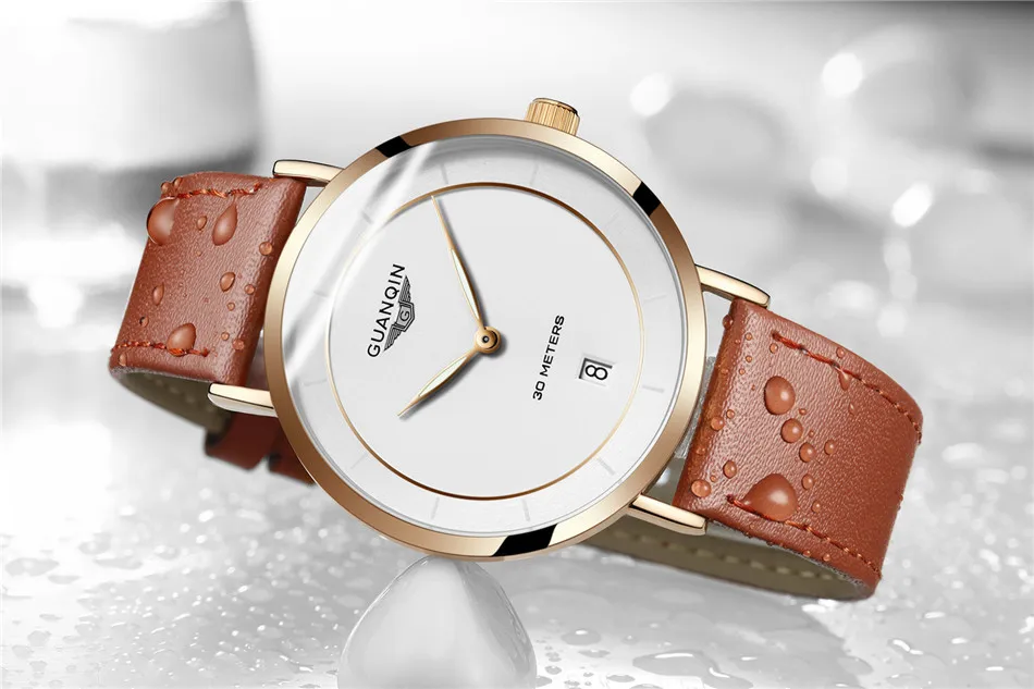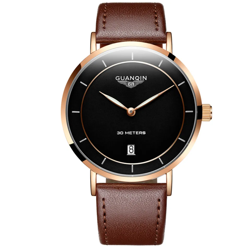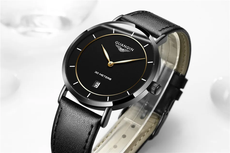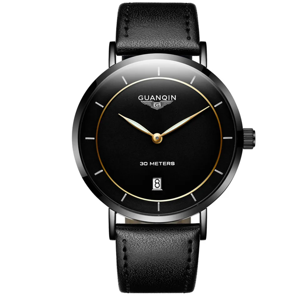 Часы GUANQIN мужские ультратонкие, простые модные дизайнерские брендовые Роскошные водонепроницаемые кварцевые повседневные наручные, с кожаным ремешком, 7 мм