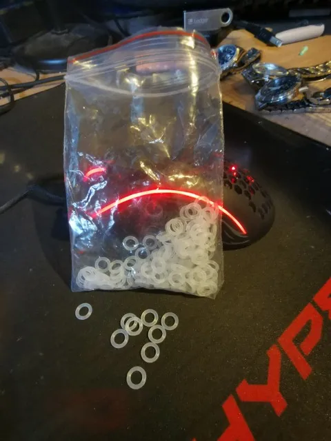 Кольца как кольца, ценник завышен на мой взгляд. Доставка за 2-3 недели до Спб. Клавиатура на коричневых свитчах стала заметно тише. Колец хватает с запасом на полноразмерную 104-кнопочную клаву.
