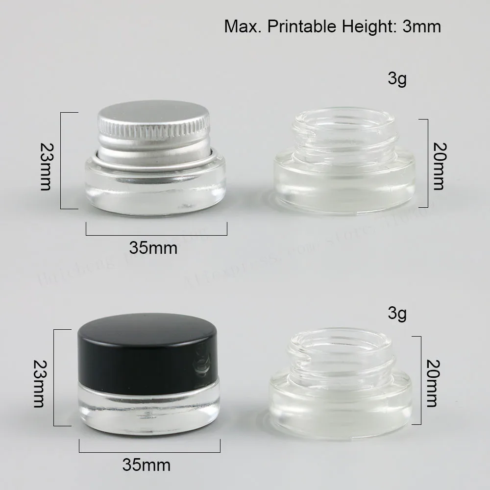 30X3g Traval маленькая стеклянная баночка для макияжа с алюминиевыми крышками, Белая полиэтиленовая подушечка, 110 унций, косметический контейнер, стеклянная баночка для упаковки