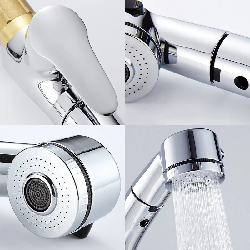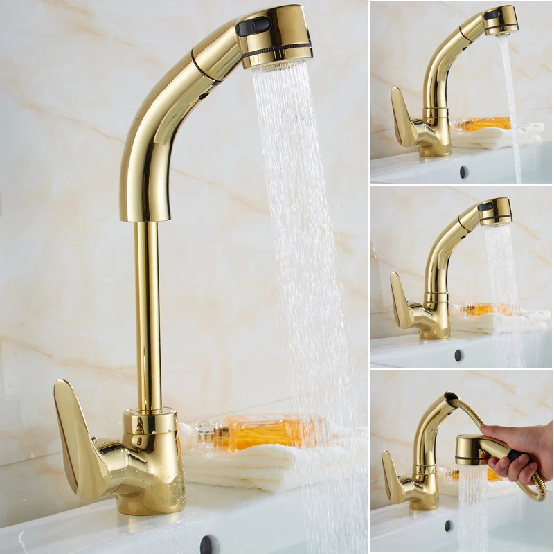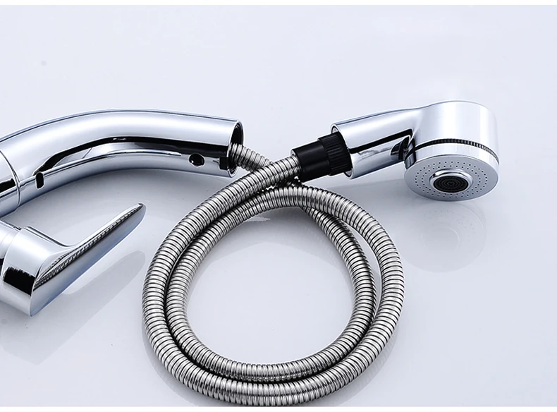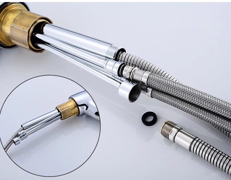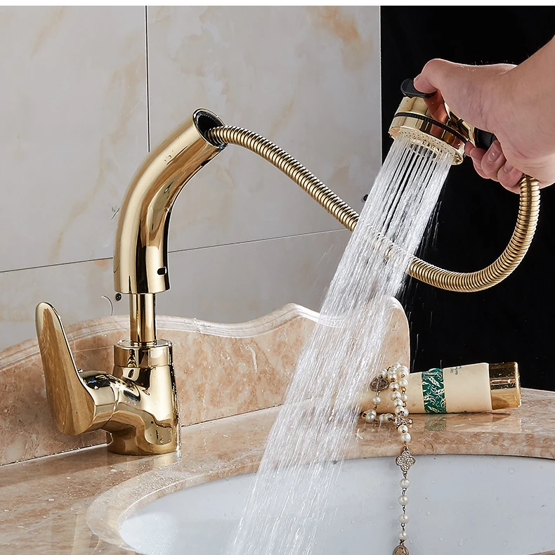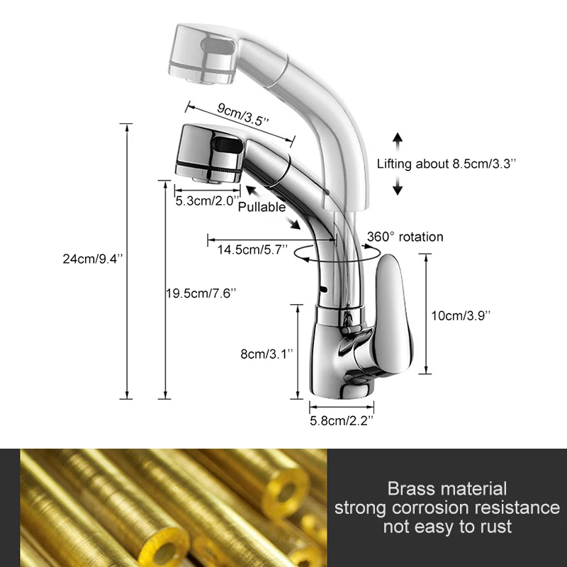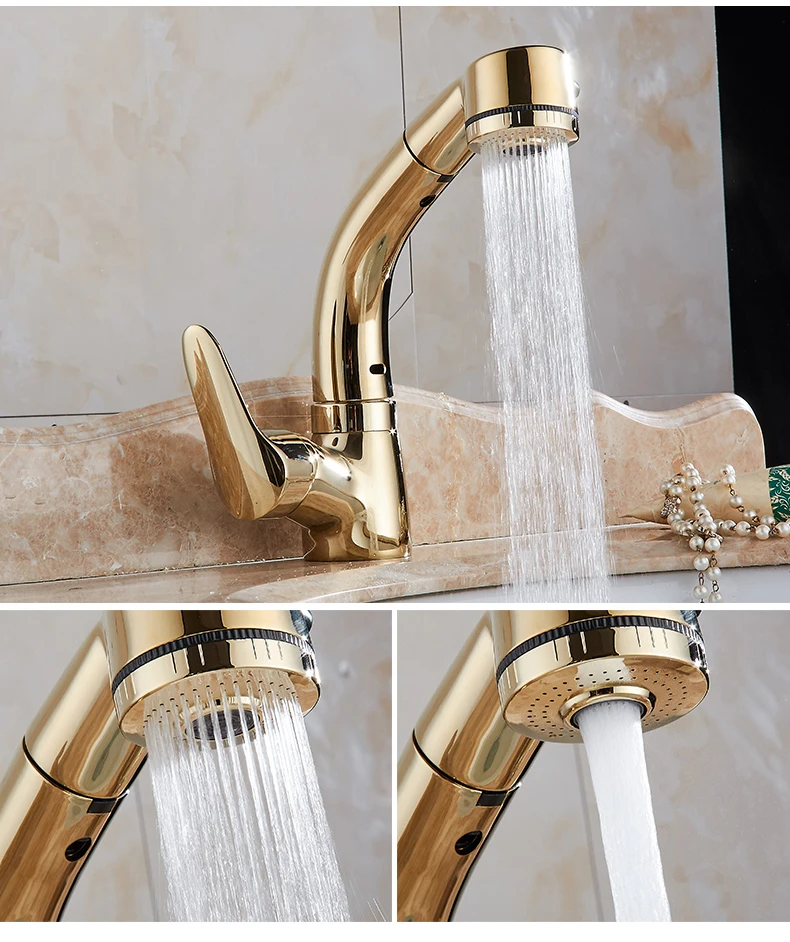 Выдвижной смеситель для раковины в ванной комнате, смеситель для горячей и холодной воды, подъем вверх и вниз, хромированный смеситель для воды на 360 градусов ELF106