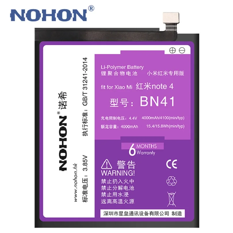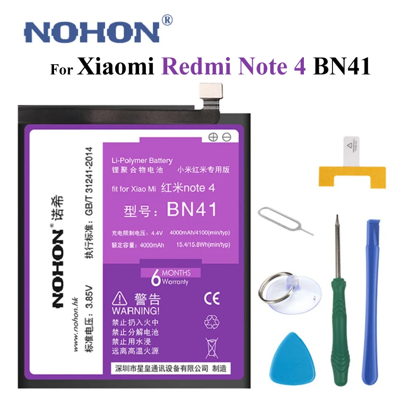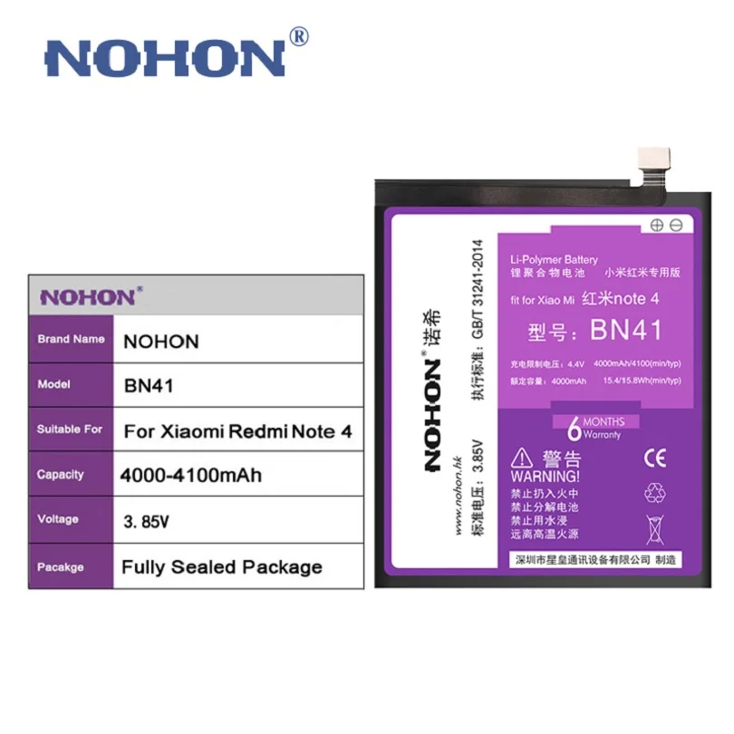 Новый аккумулятор NOHON 4000 мАч для XiaoMi RedMi Note 4 HongMi Note4 BN41, Высокая реальная емкость, замена батареи с упаковкой + Инструменты
