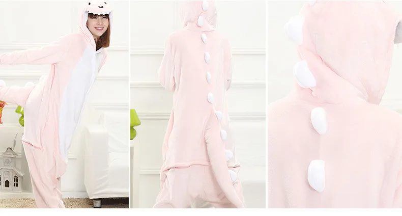 Пижама-кигуруми в виде динозавра, женская зимняя Домашняя одежда, фланелевый костюм в виде розового животного для косплея, праздничный комбинезон, теплый костюм для взрослых
