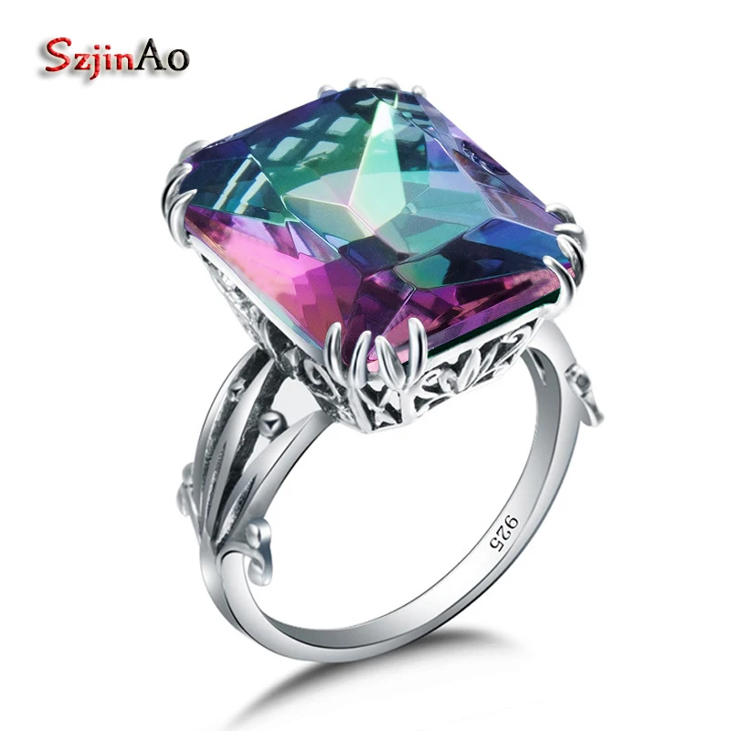 Szjinao турецкое украшение ручной работы, квадратные кольца из стерлингового серебра 925 пробы, большие коктейльные кольца радужные стразы пробы для женщин, bague homme
