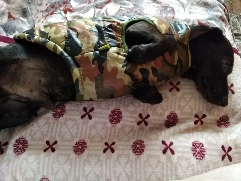 Заказал тот же размер, что и раньше. То ли размеры одежды у этого продавца с другими параметрами, то ли собака похудела. Но качество товара хорошее.