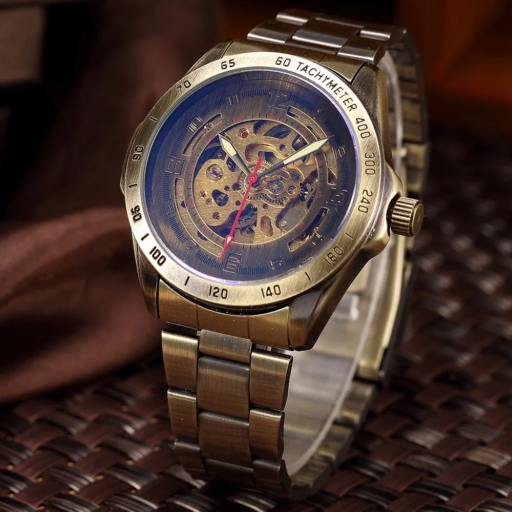 Часы-скелетоны Мужские механические, под бронзу, под старину, 067