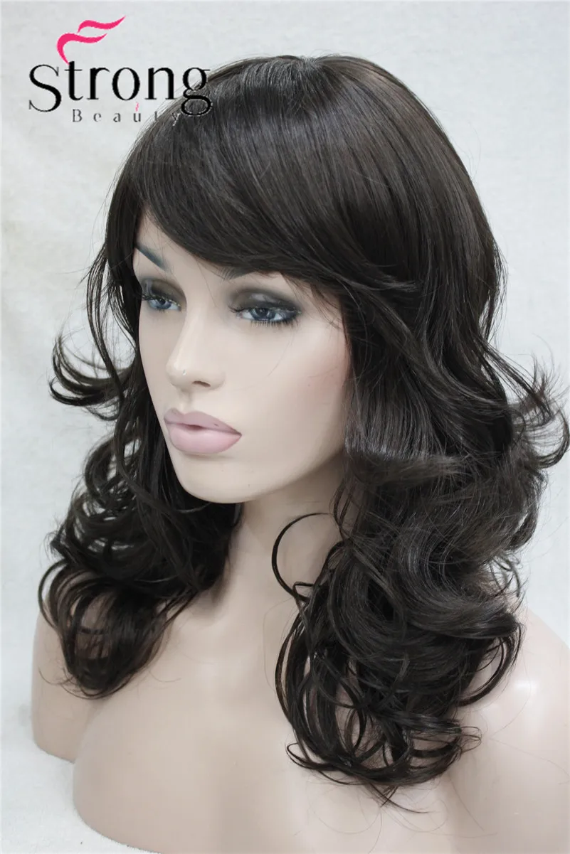 StrongBeauty средней длины волнистые темно-коричневый полный синтетический парик женские парики выбор цвета