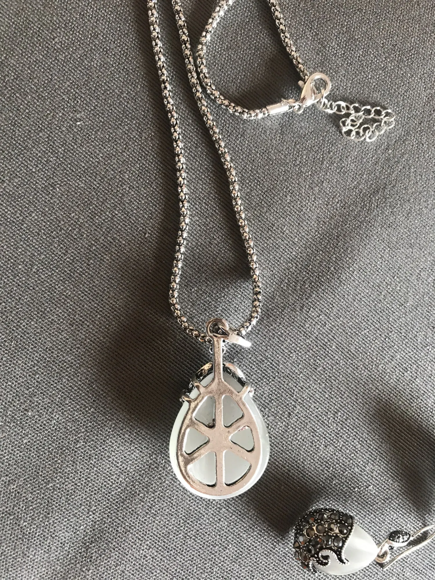пришли только сережки, подвески нет. Должен быть набор, связалась с продавцом, жду ответа