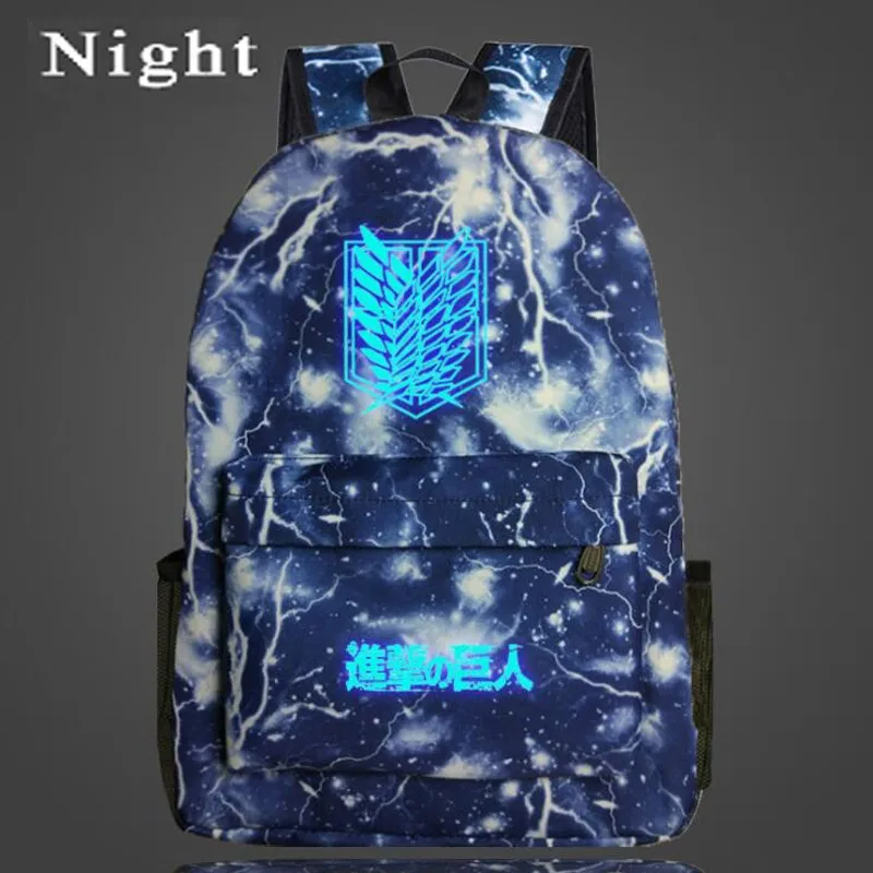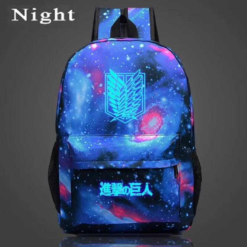Светящийся в темноте рюкзак атака на Титанов, японское аниме-Принт, мультяшный легкий нейлоновый школьный ранец для подростков с галактикой