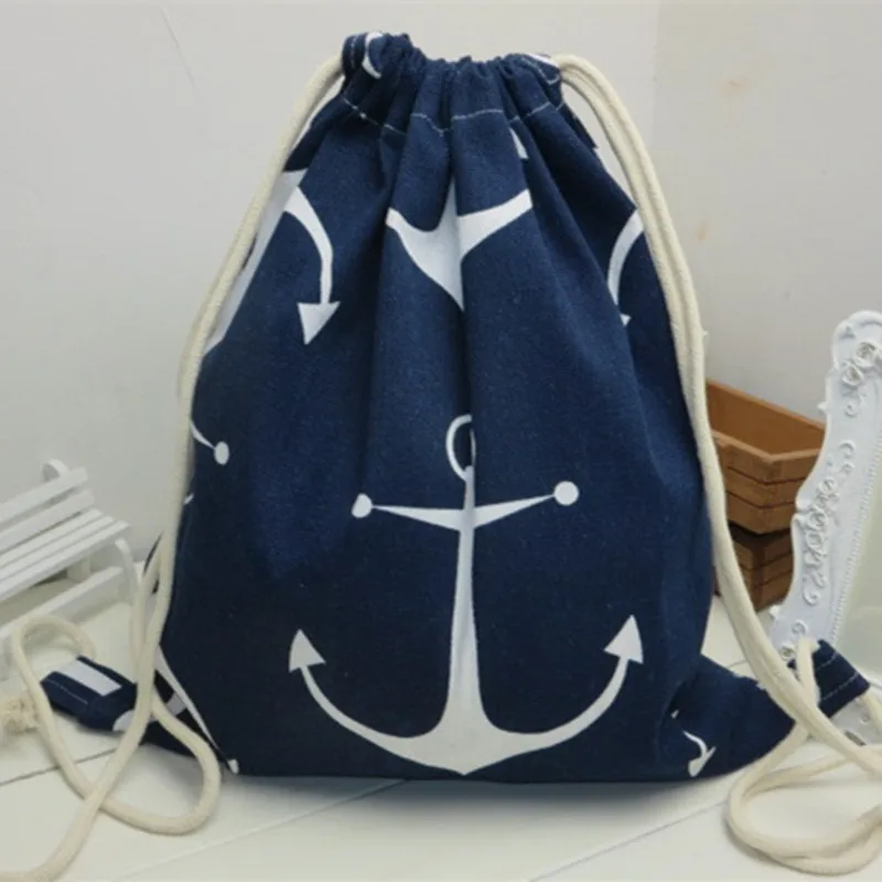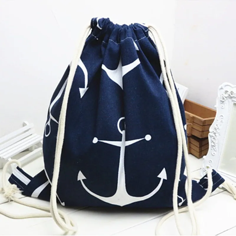 Дорожный рюкзак YILE из хлопка и льна на шнурке, Студенческая сумка для книг и обуви, синий с принтом якоря, B02 icon star icon star icon star icon star icon star