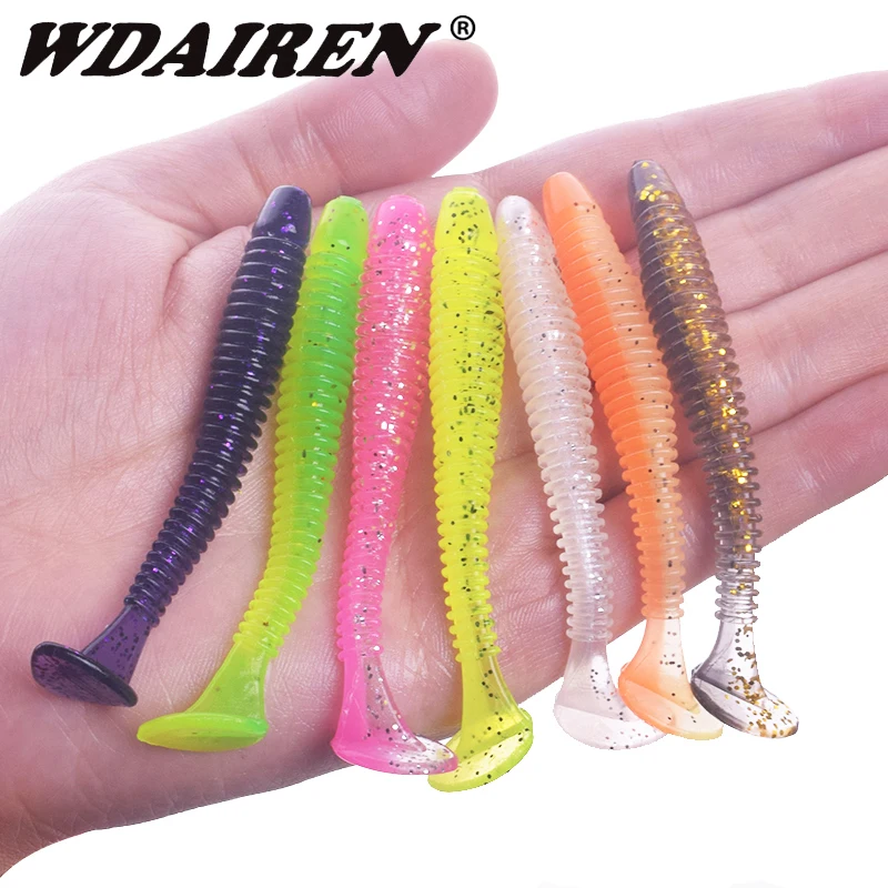 10 шт.лот T-образный хвост, силиконовая Мягкая приманка, 5 см, 7 см