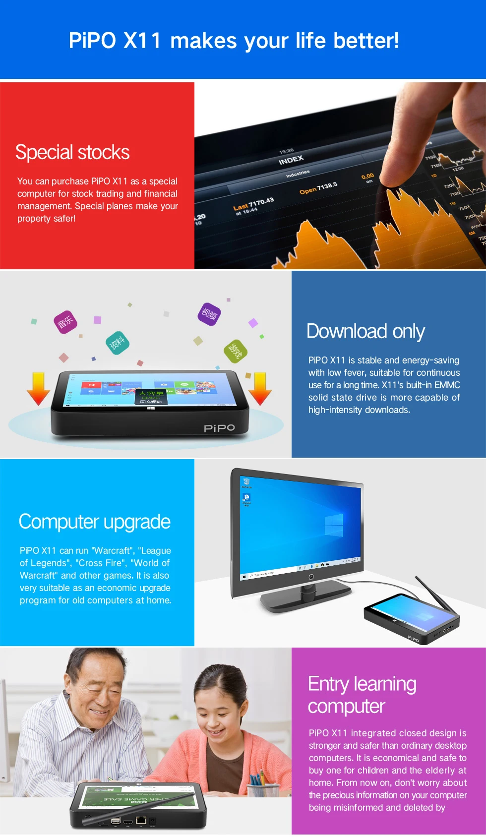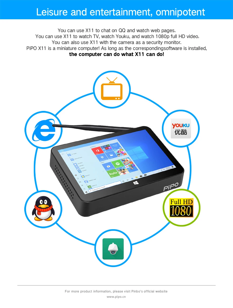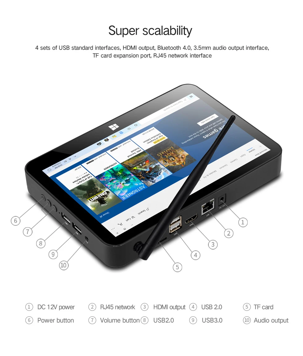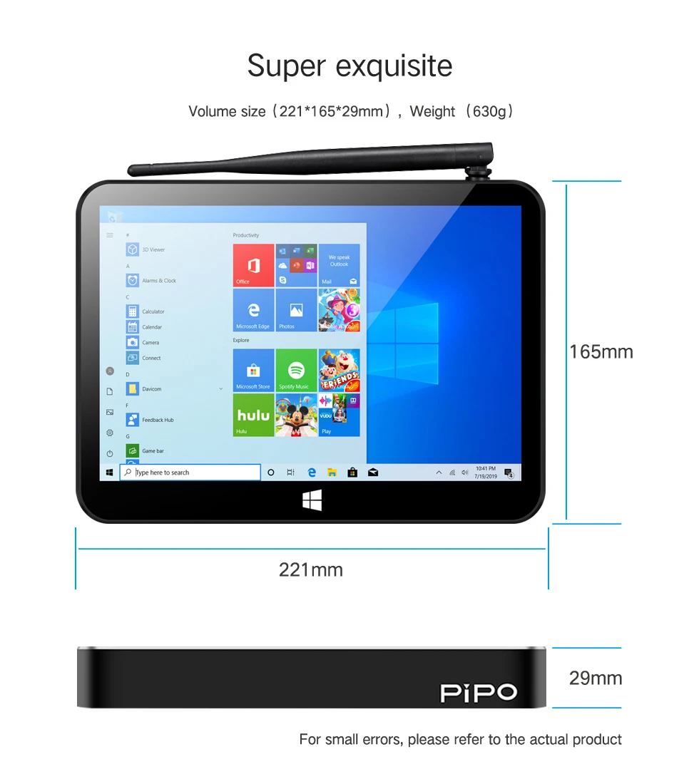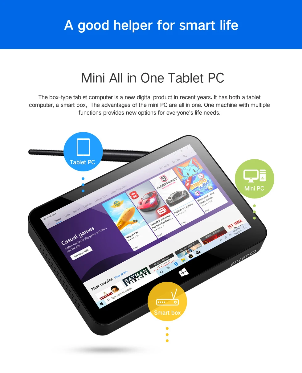 Pipo X11 мини-ПК Celeron N4020 9 дюймов 1920*1200 экран Win10 планшетный ПК 3 ГБ ОЗУ 64 Гб ПЗУ ТВ-приставка BT4.0 Wifi RJ45 мини-Настольный ПК