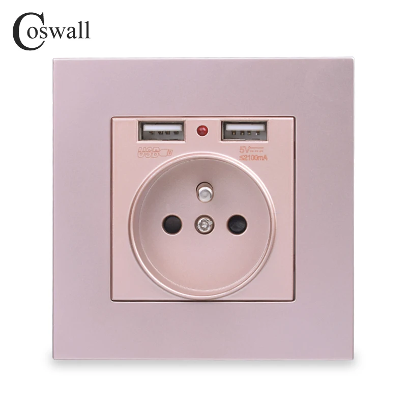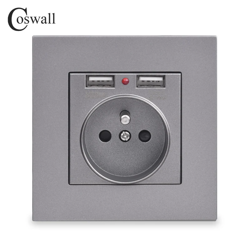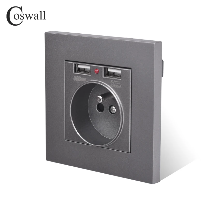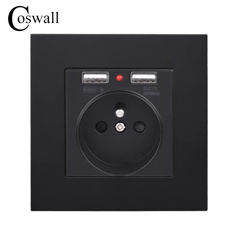 COSWALL настенная розетка заземленная детская Защитная Дверь, французский стандартный выход с 2.1A двойной USB зарядкой Черный Белый ПК Панель