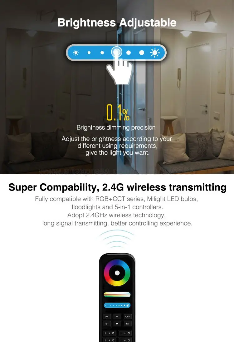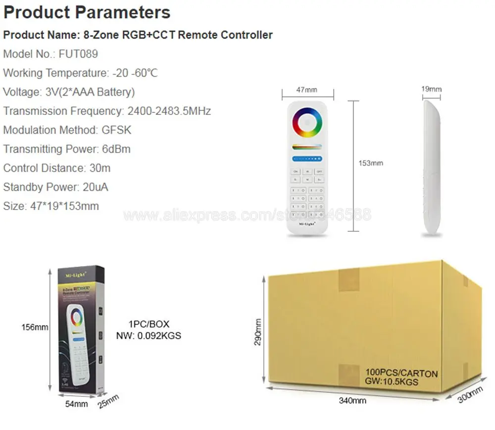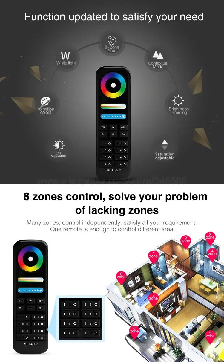 Пульт ДУ MiLight FUT089, 2,4 ГГц, 8 зон, RGB + CCT