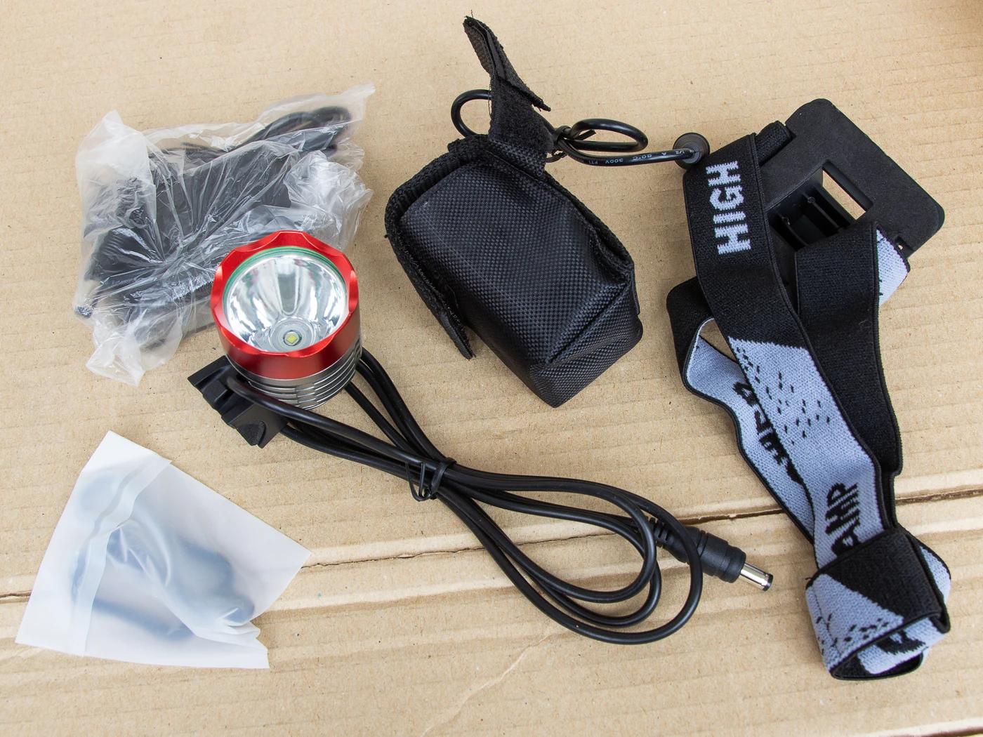 1x8000 лм t6 светодиодный светильник вой блок (может использоваться как налобный фонарь или велосипедсветильник1 Регулируемое оголовье2 резиновых кольца для установки1x8,4 v 6400mAh аккумулятор1 зарядное устройство переменного тока (100-240 В) для вашей страны