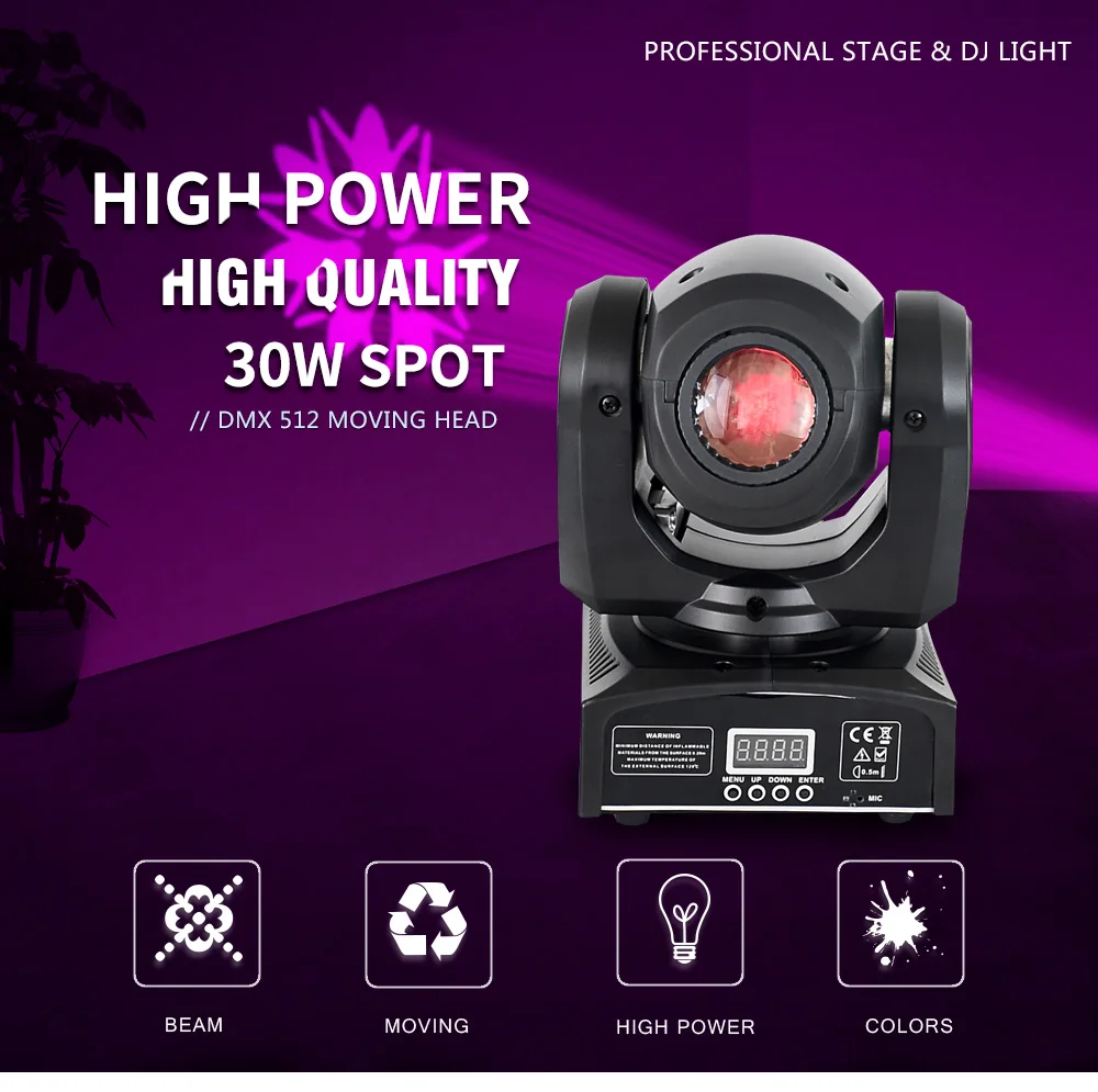 Движущаяся головка Lyre DMX 30 Вт, мобильный светодиодный точечный мини-проектор со звуком, диско светильник s для домашвечерние, шоу, диджея