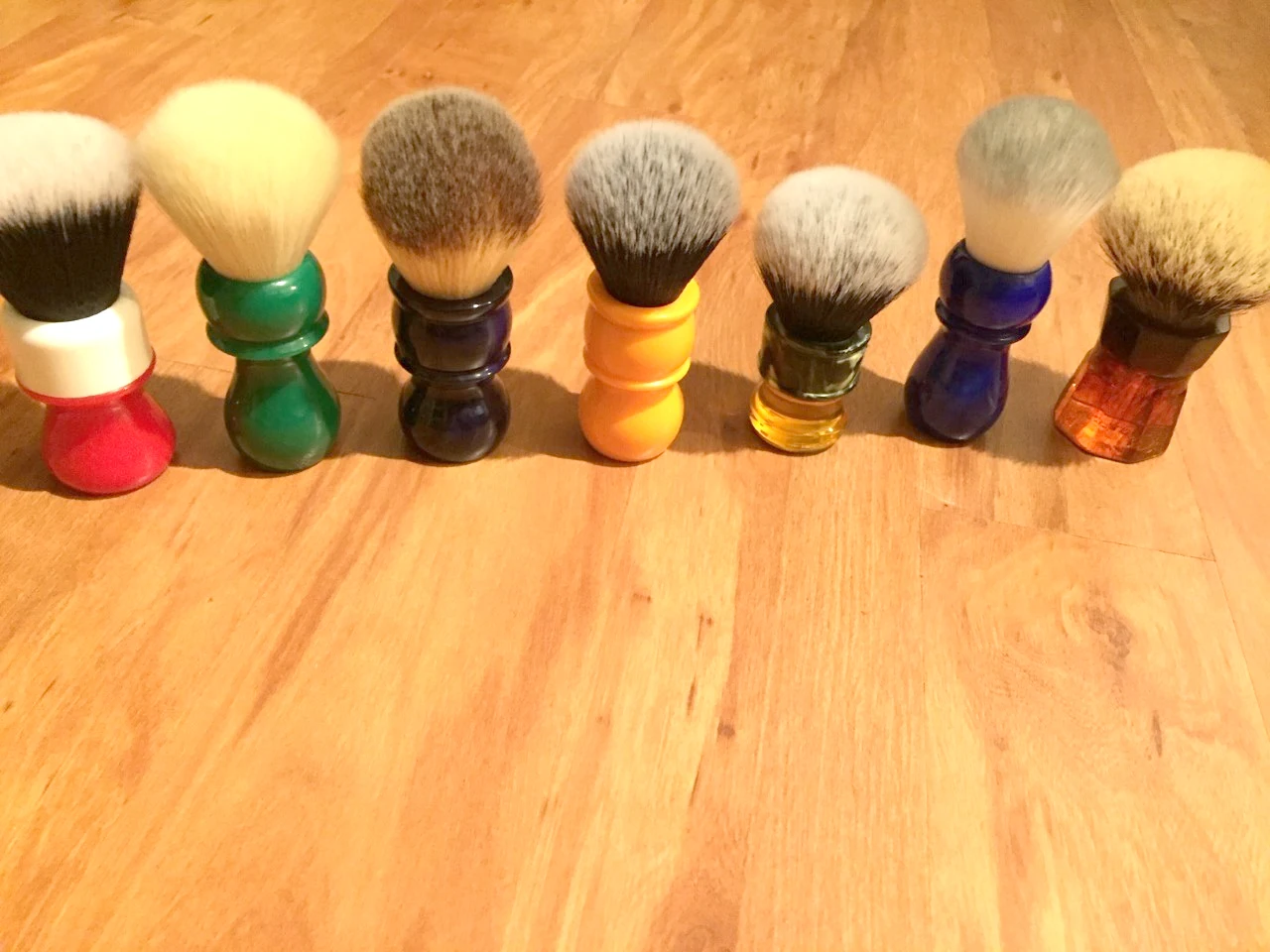 Хорошая кисть. Мягкие ворсинки, легко создают пену. Лучше всего подходит для использования при держании между большим и указательным пальцами. Ручка темно-синяя, фиолетовая с небольшим Белым Вихрем. Цвета заставляют меня чувствовать себя немного «за пределами стены» в Игре престолов, с белыми ходунками;-P