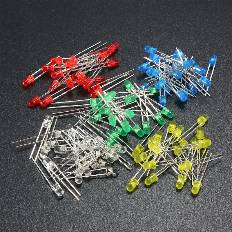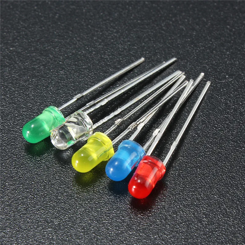 3 мм 100 шт.лот светодиодные излучающие диоды Набор круглых 5 цветов рассеянный зеленый красный белый синий желтый ассортимент для DIY освещения