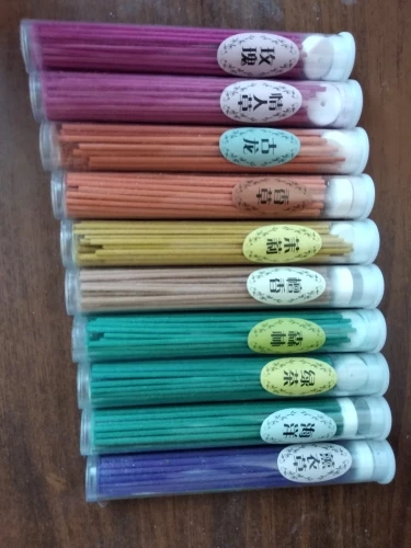 Все эти благовония пахнут одинаково, разницы не увидела. Приобрела несколько видов-запах один и тот же. Очень тоненькие, зато есть подставка для них и они очень удобно вставляются. С виду все красиво, запах не раздражающий гари. Немного не то, что я ожидала.