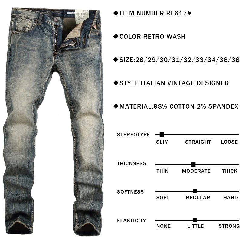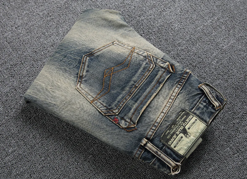 Модные мужские джинсы в итальянском стиле, эластичные хлопковые повседневные джинсовые длинные брюки в стиле ретро, высококачественные винтажные дизайнерские облегающие брюки