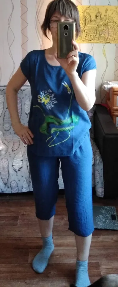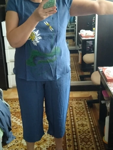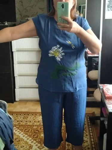 Товаром очень довольна,не ожидала такого качества пошива.Сшито идеально!Костюмчик больше летний,чем пижама.Буду носить повседневно.На свой 52 размер брала 4хл и подошел отлично.Спасибо продавцу за быструю отправку.Товар рекомендую.